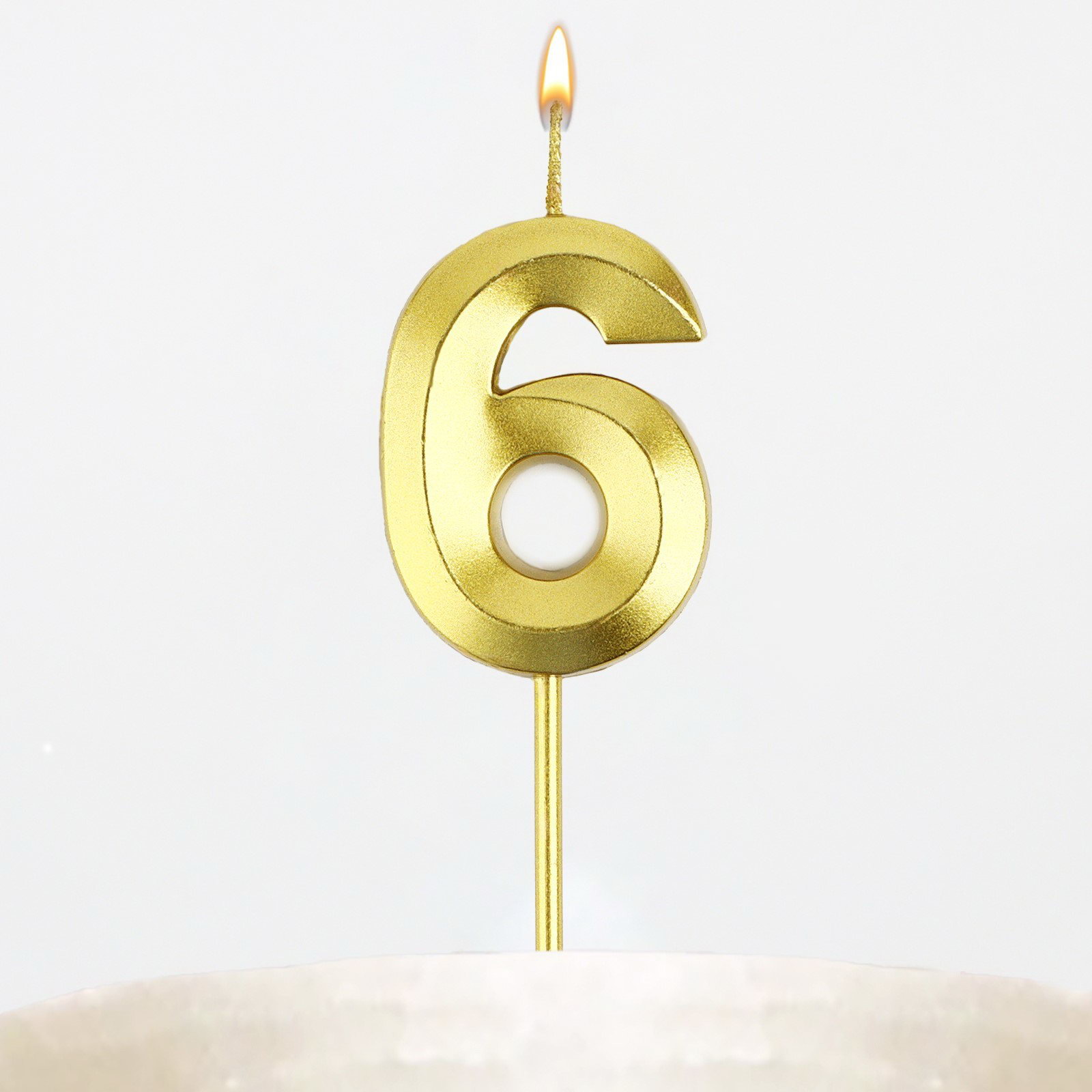 Свеча цифра для торта "6", золото, 2.3 x 8 см, 2.5x1x8 см., Страна Карнавалия, Китай
