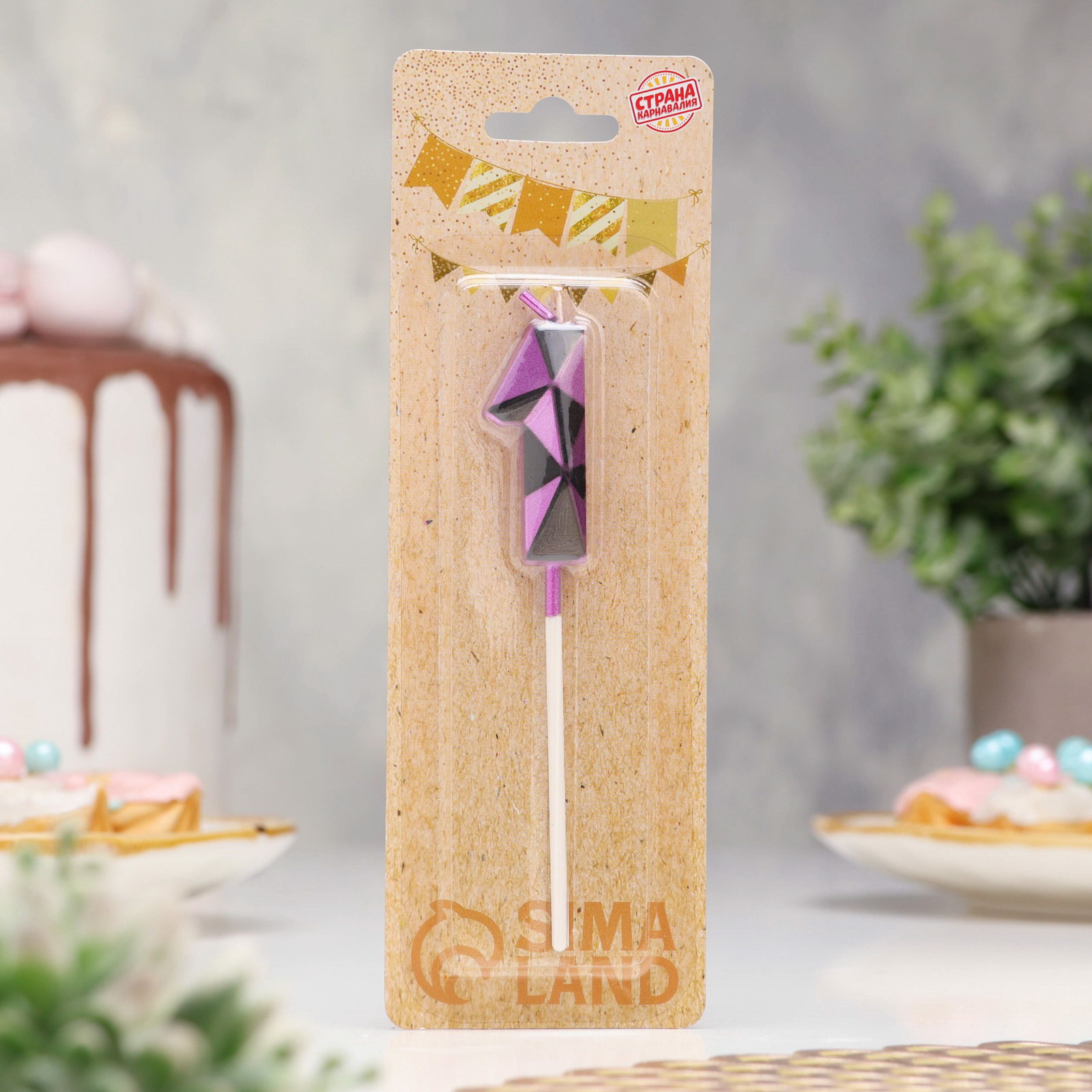 Свеча для торта "Алмаз", цифра 1, фиолетовый металлик, Страна Карнавалия, Китай