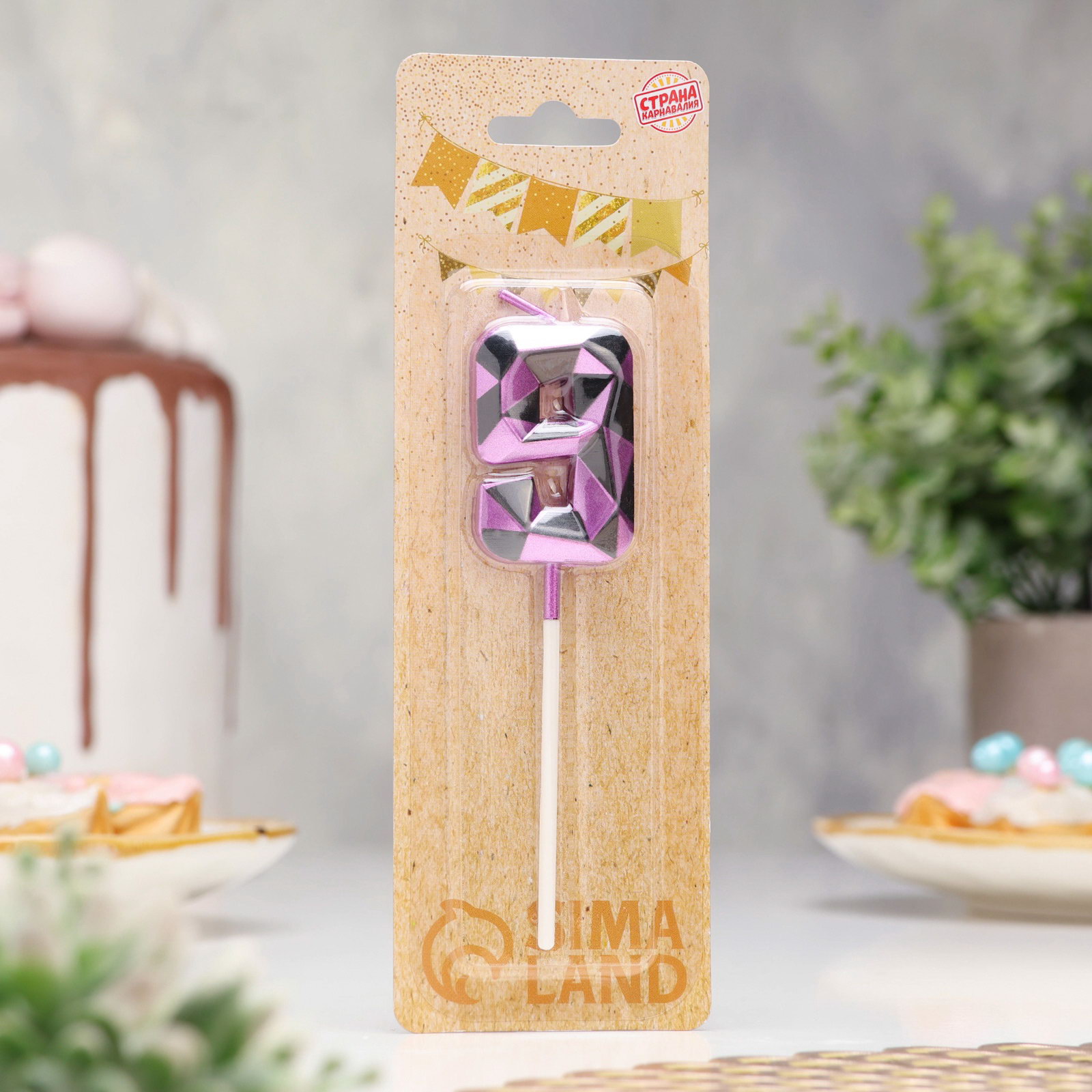Свеча для торта "Алмаз", цифра 9, фиолетовый металлик, Страна Карнавалия, Китай