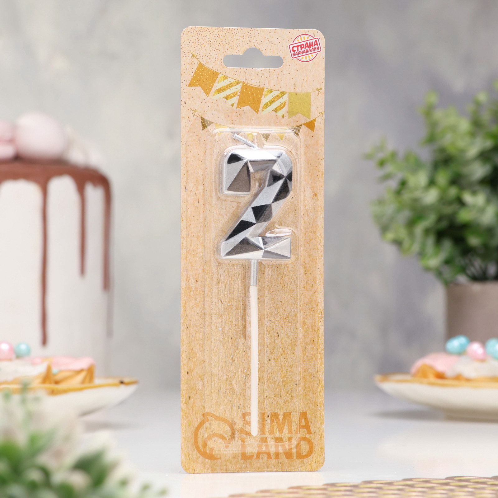 Свеча для торта "Алмаз", цифра 2, серебристый металлик, Страна Карнавалия, Китай