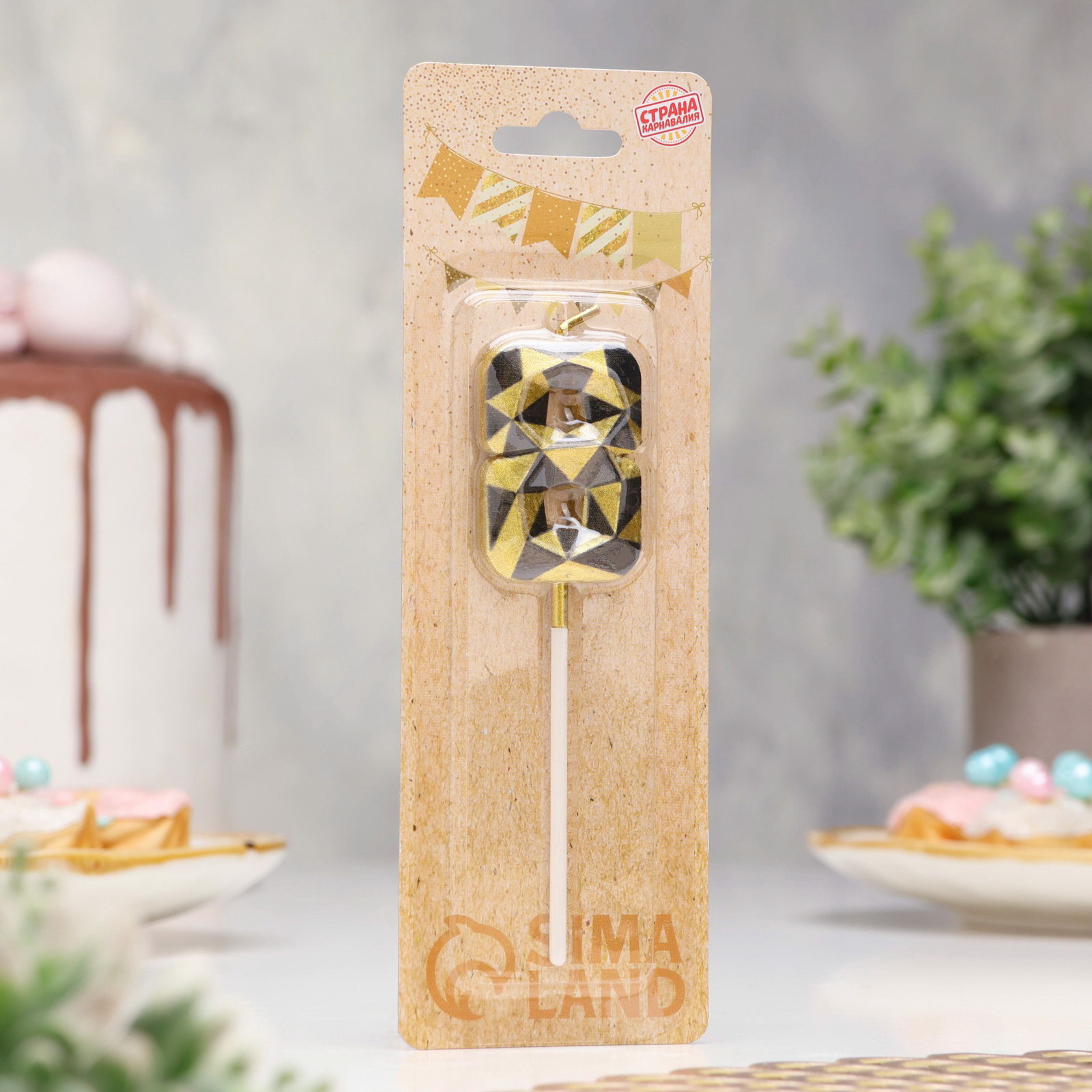 Свеча для торта "Алмаз", цифра 8, золотой с черным, Страна Карнавалия, Китай