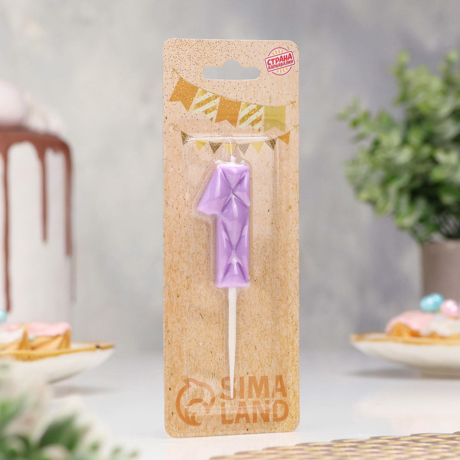Свеча для торта "Лёд", цифра 1, сиреневая, Страна Карнавалия, Китай
