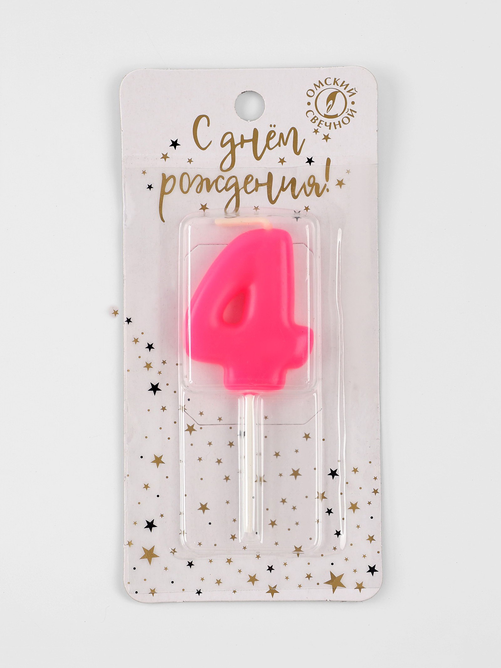 Свеча для торта "Неоновая", цифра 4, розовая, Омский свечной завод, Россия