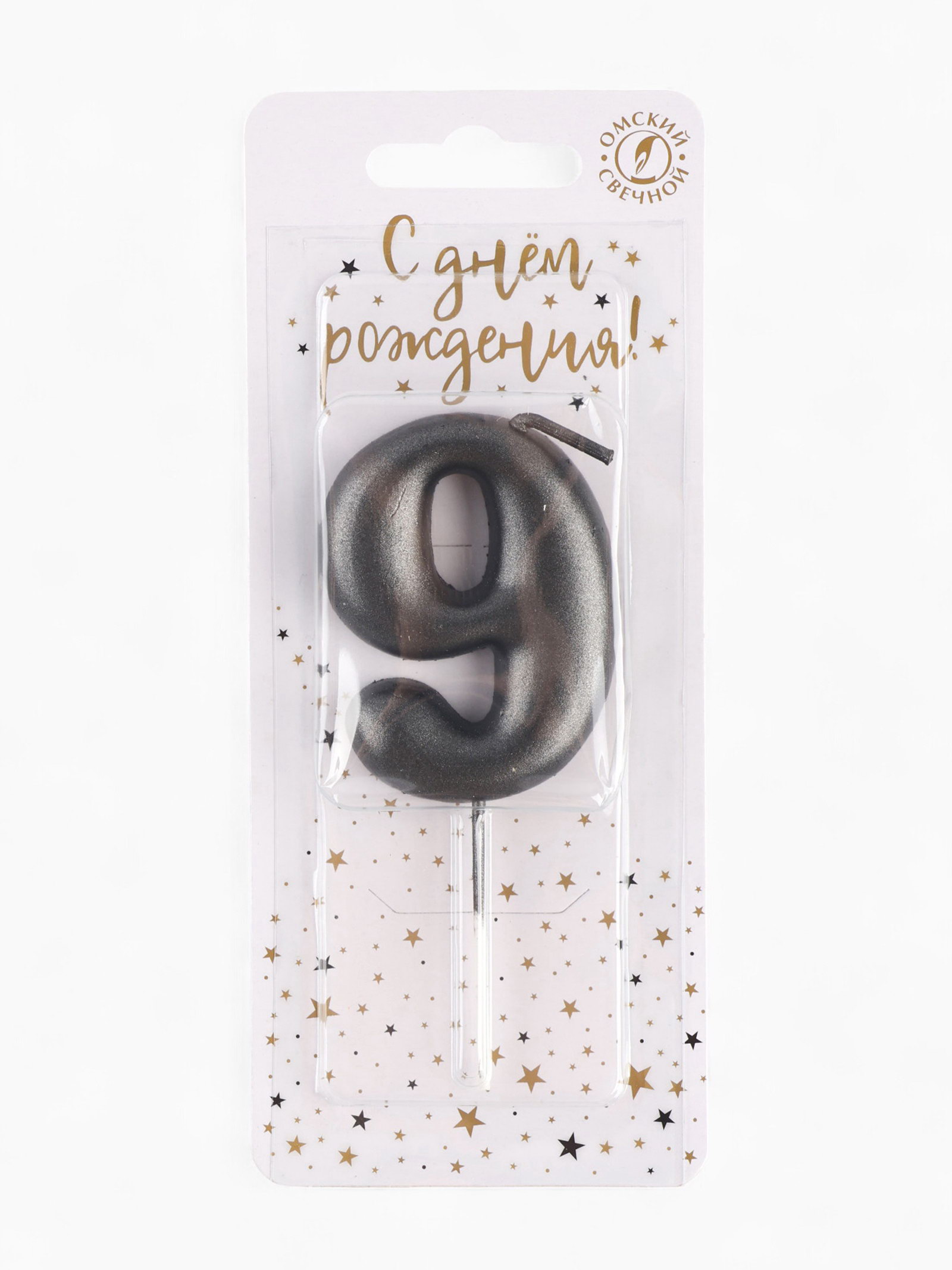 Свеча в торт "Мокрый асфальт", цифра 9, Омский свечной завод, Россия