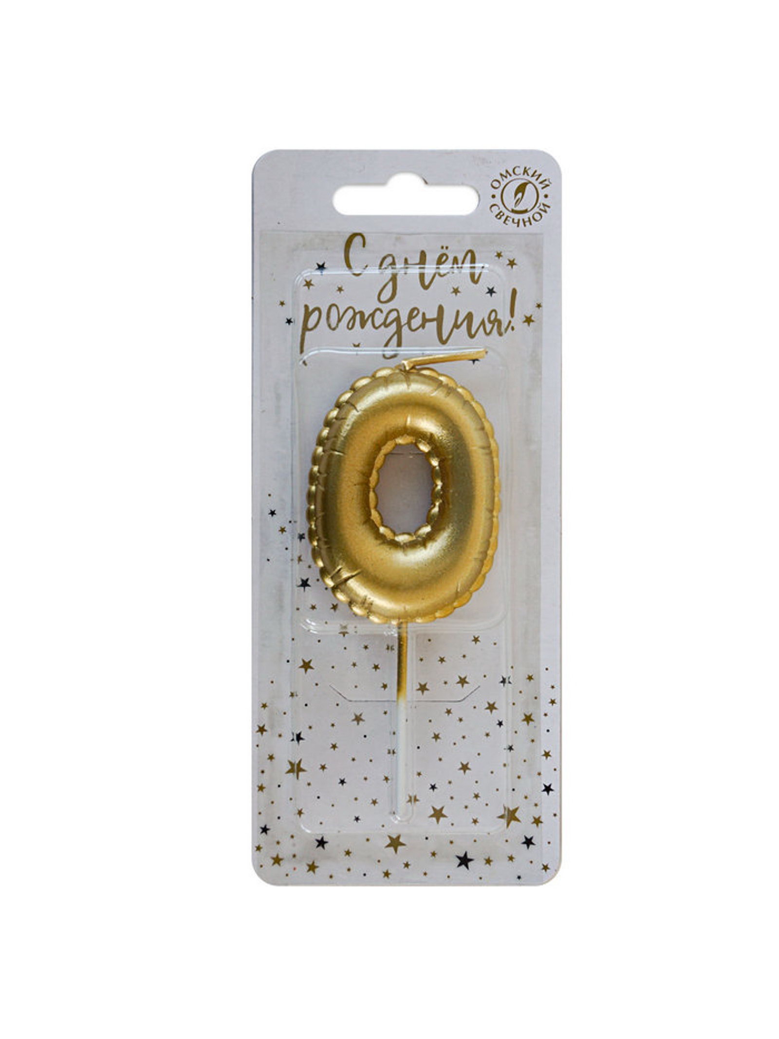 Свеча в торт на шпажке "Воздушная цифра 0", золото, Омский свечной завод, Россия