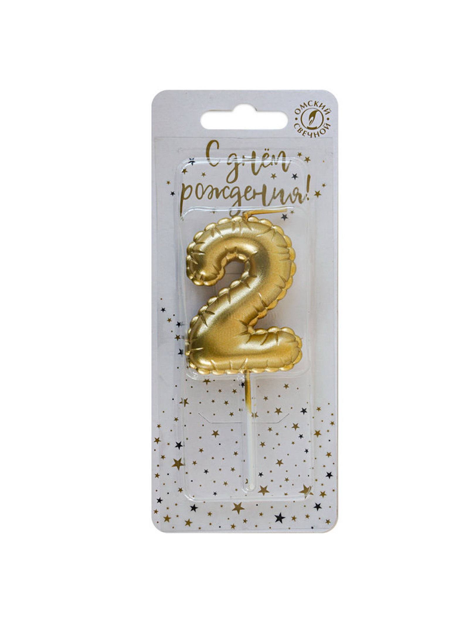 Свеча в торт на шпажке "Воздушная цифра 2", золото, Омский свечной завод, Россия