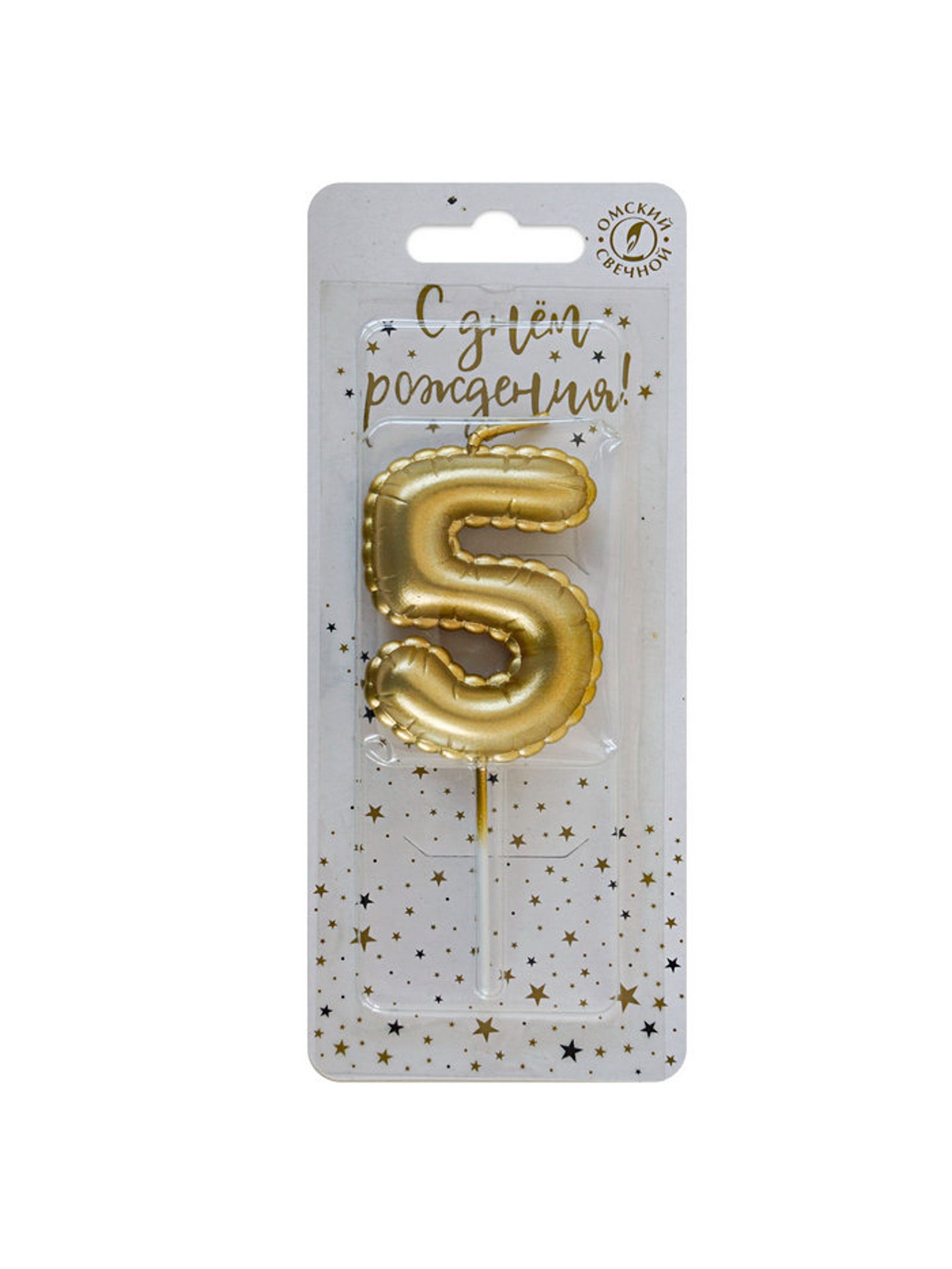 Свеча в торт на шпажке "Воздушная цифра 5", золото, Омский свечной завод, Россия