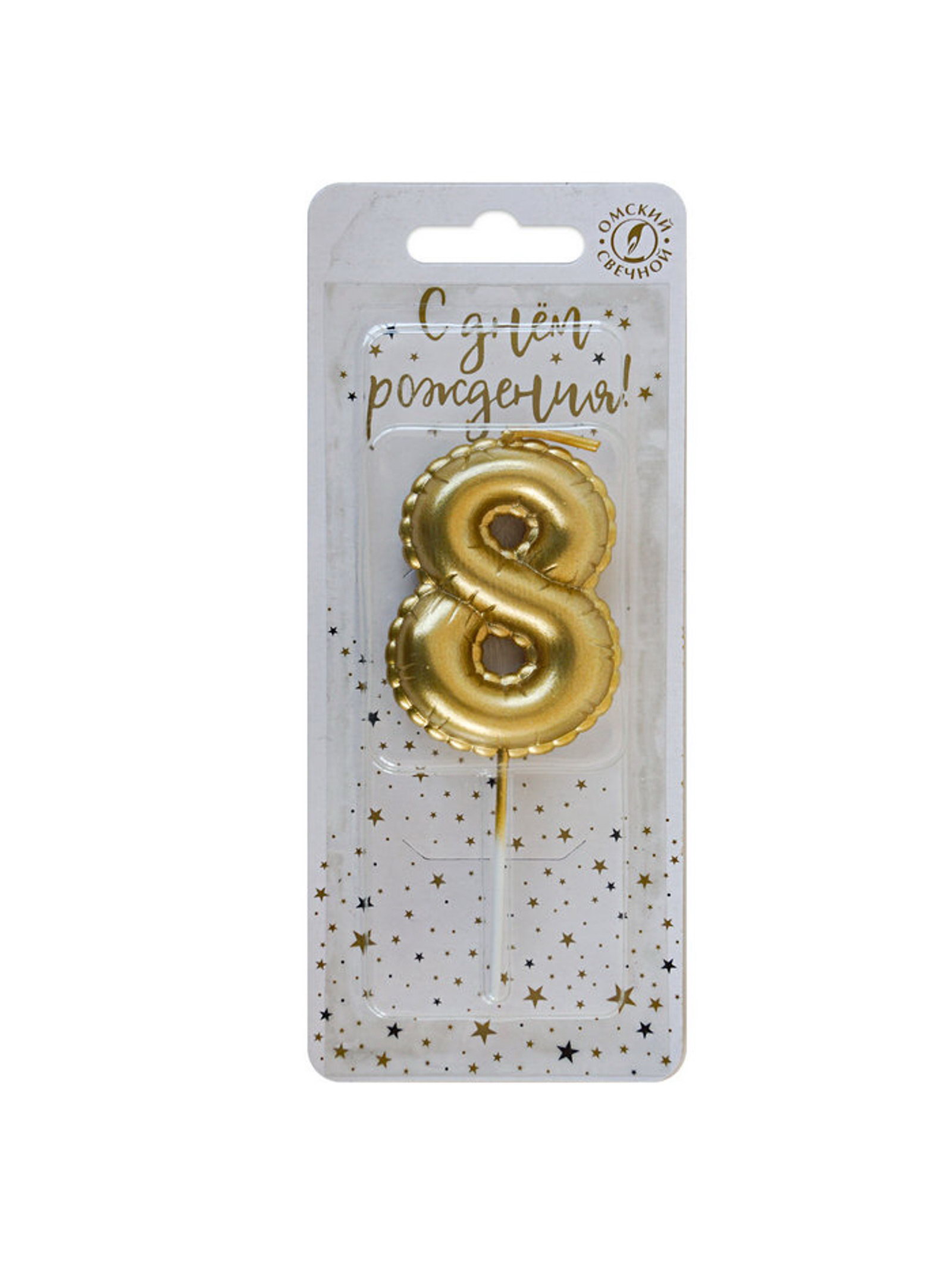 Свеча в торт на шпажке "Воздушная цифра 8", золото, Омский свечной завод, Россия