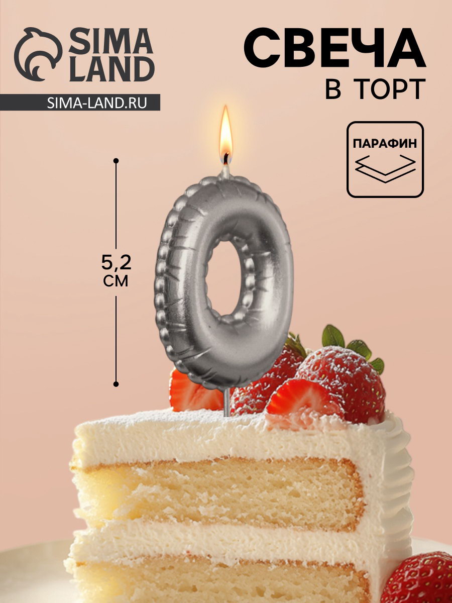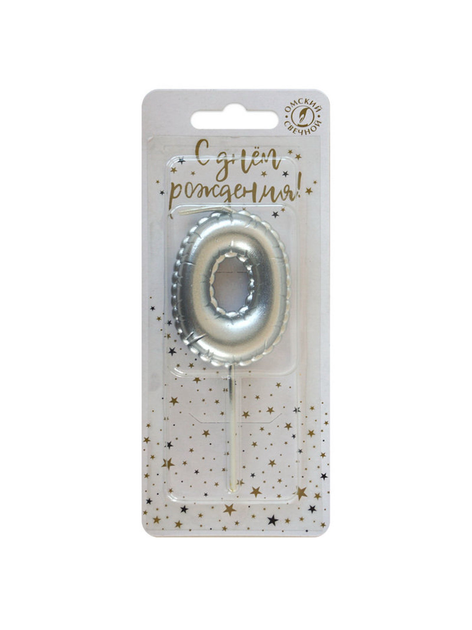 Свеча в торт на шпажке "Воздушная цифра 0", серебро, Омский свечной завод, Россия