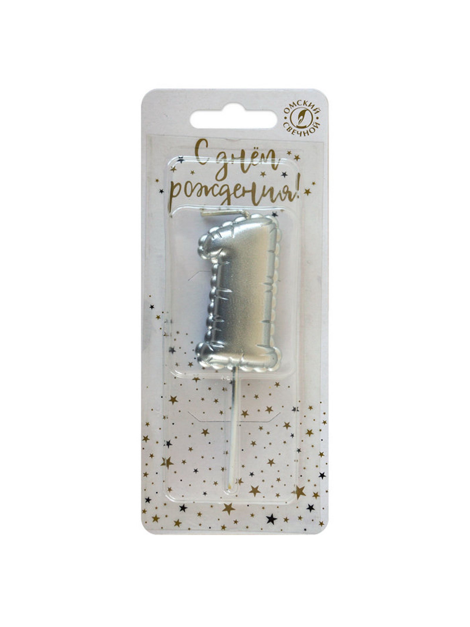 Свеча в торт на шпажке "Воздушная цифра 1", серебро, Омский свечной завод, Россия