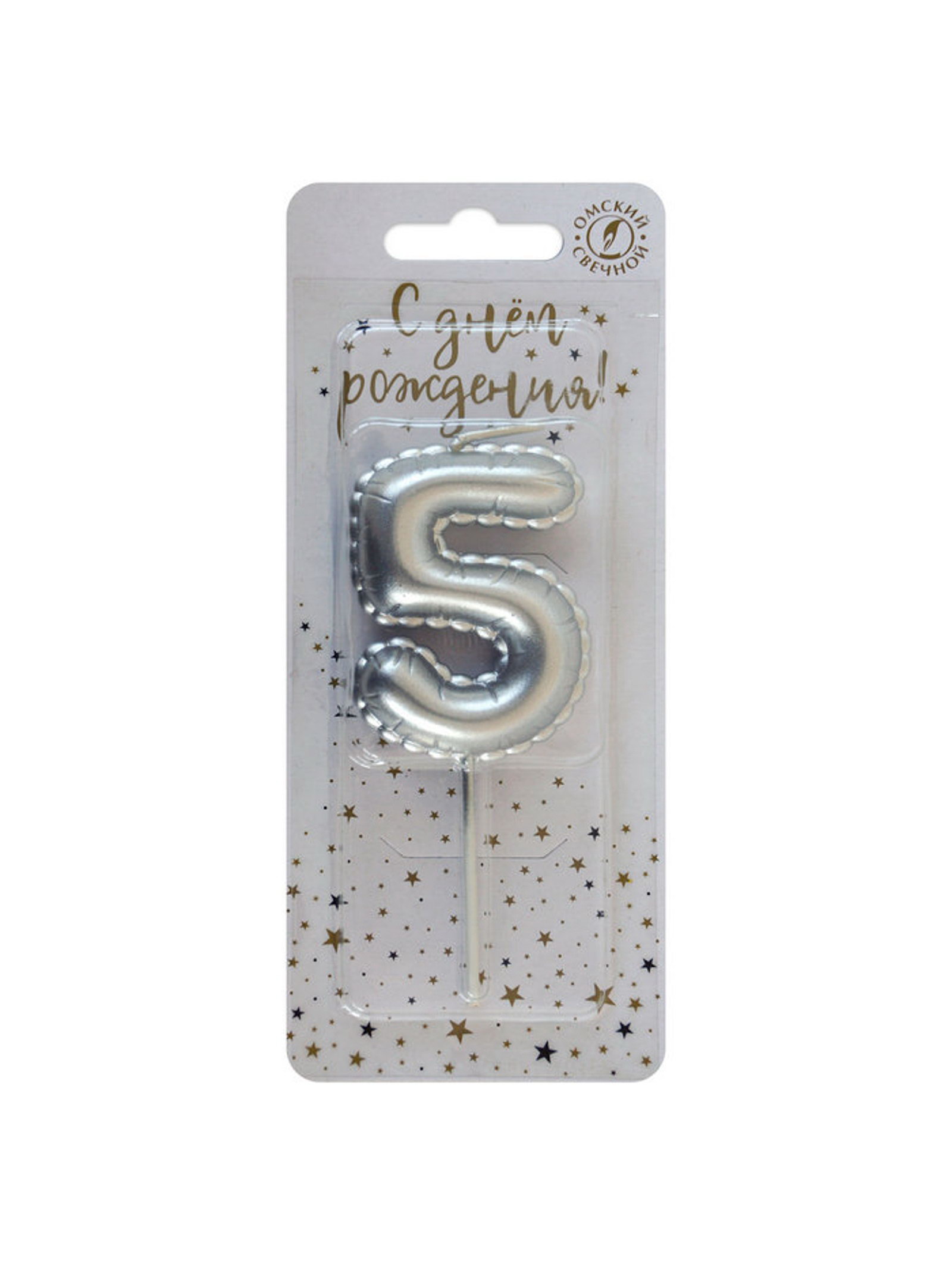 Свеча в торт на шпажке "Воздушная цифра 5", серебро, Омский свечной завод, Россия