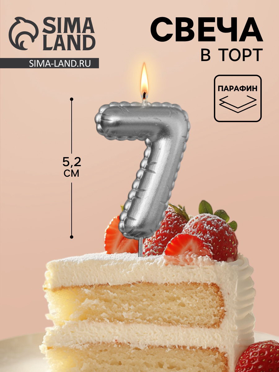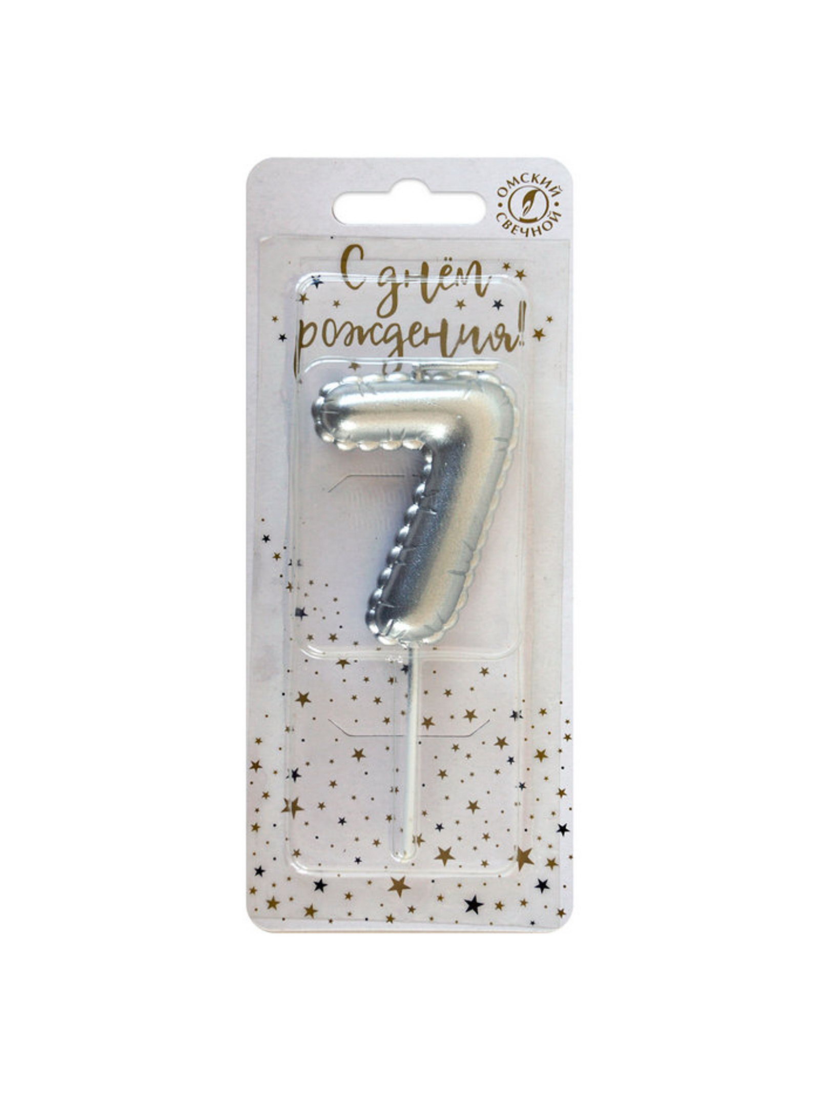 Свеча в торт на шпажке "Воздушная цифра 7", серебро, Омский свечной завод, Россия