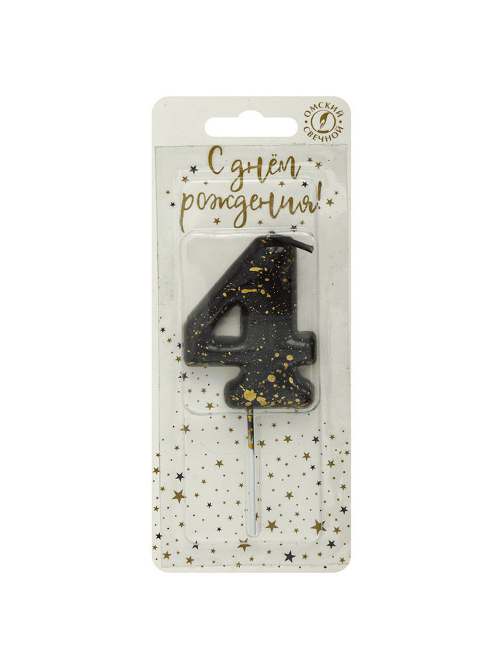 Свеча в торт "Черные брызги", цифра 4, Омский свечной завод, Россия