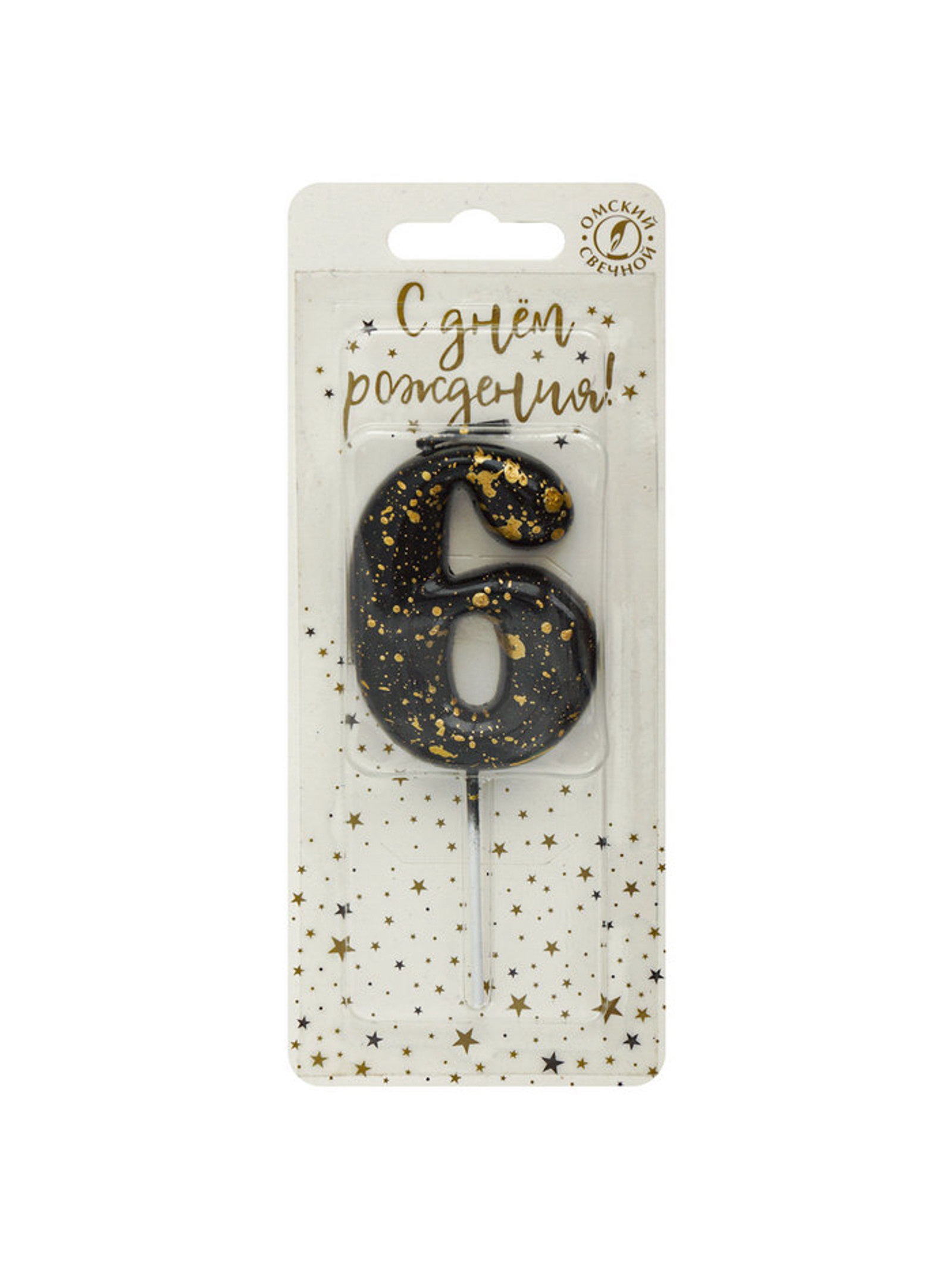 Свеча в торт "Черные брызги", цифра 6, Омский свечной завод, Россия