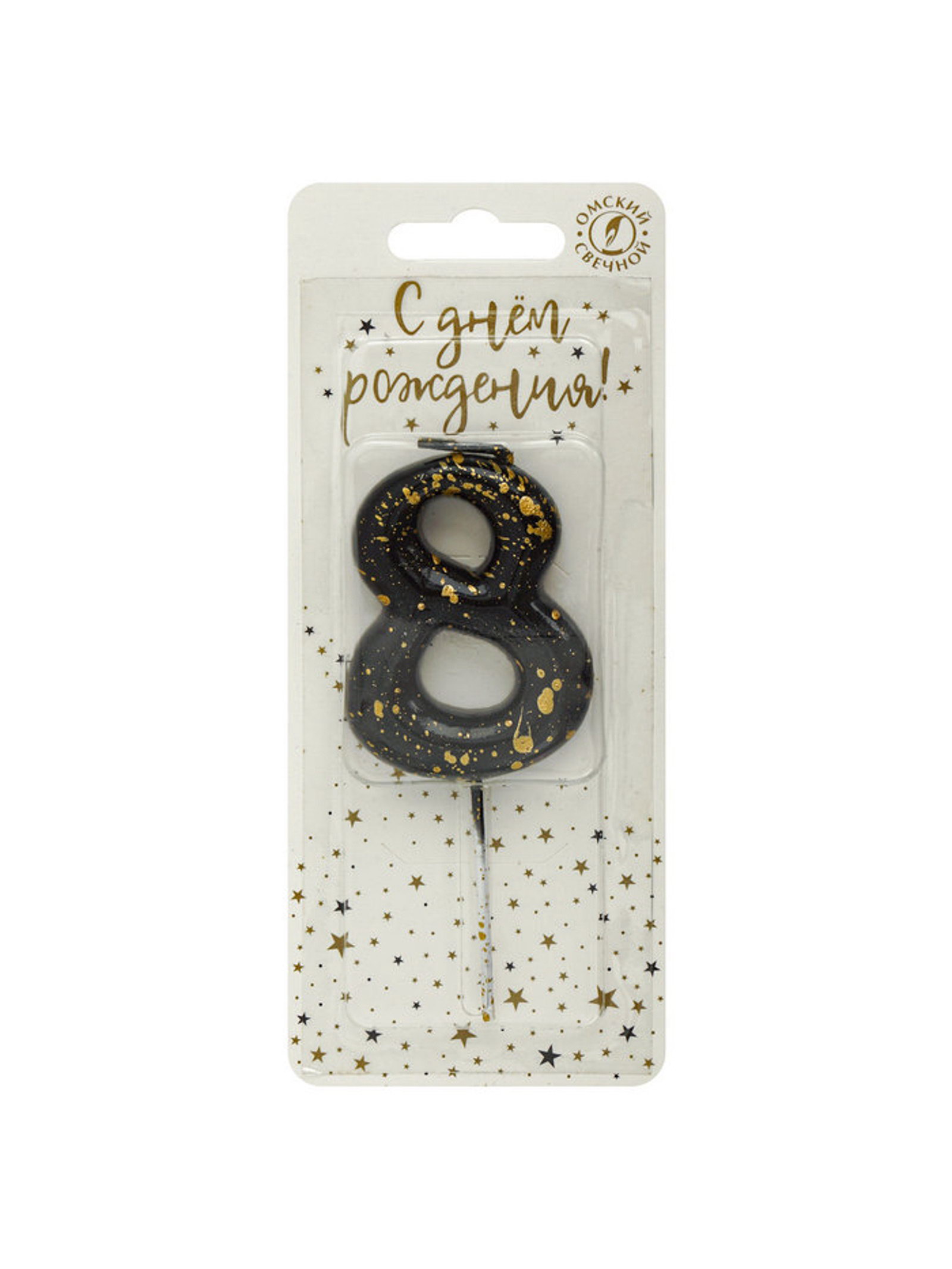 Свеча в торт "Черные брызги", цифра 8, Омский свечной завод, Россия