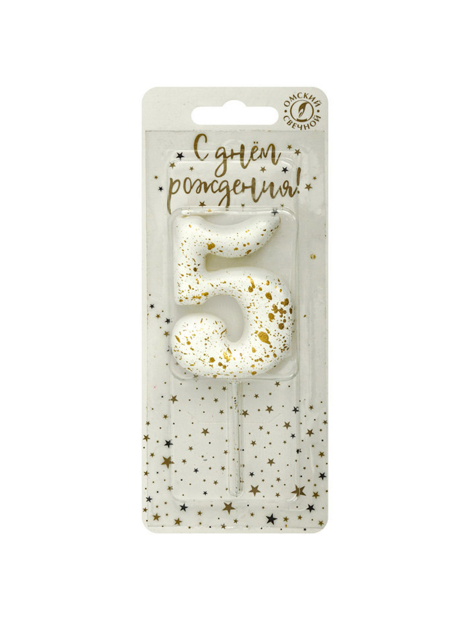Свеча в торт "Белые брызги", цифра 5, Омский свечной завод, Россия