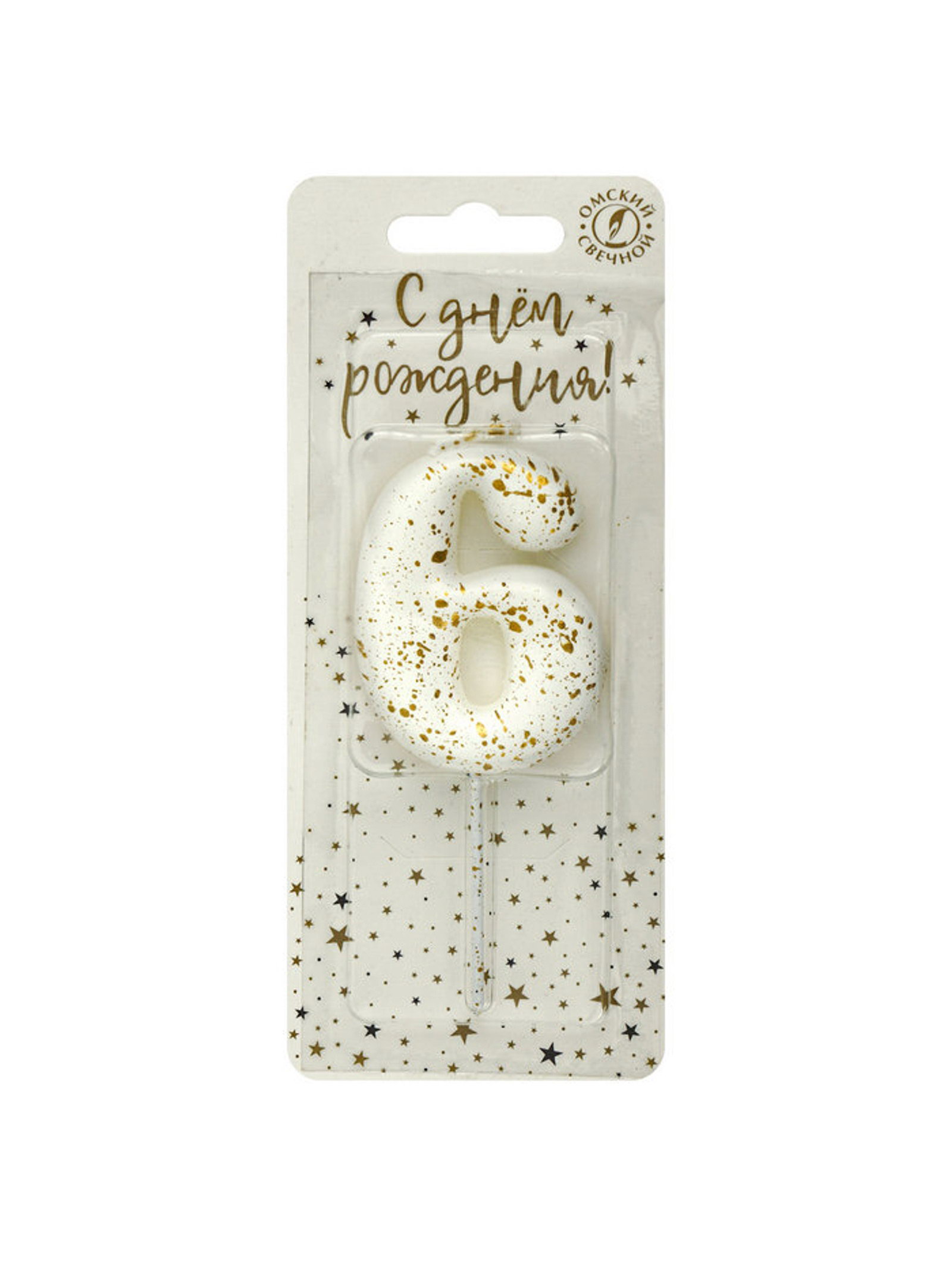 Свеча в торт "Белые брызги", цифра 6, Омский свечной завод, Россия