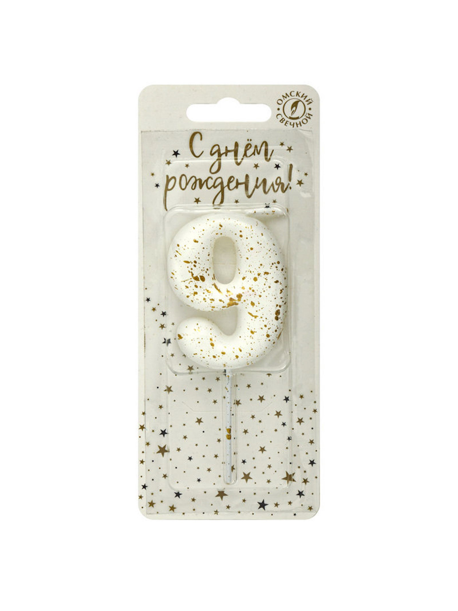 Свеча в торт "Белые брызги", цифра 9, Омский свечной завод, Россия