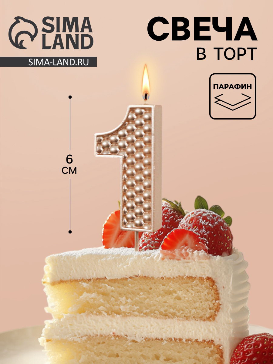 Свеча в торт на шпажке "Жемчужная", цифра 1, шампань, Омский свечной завод, Россия
