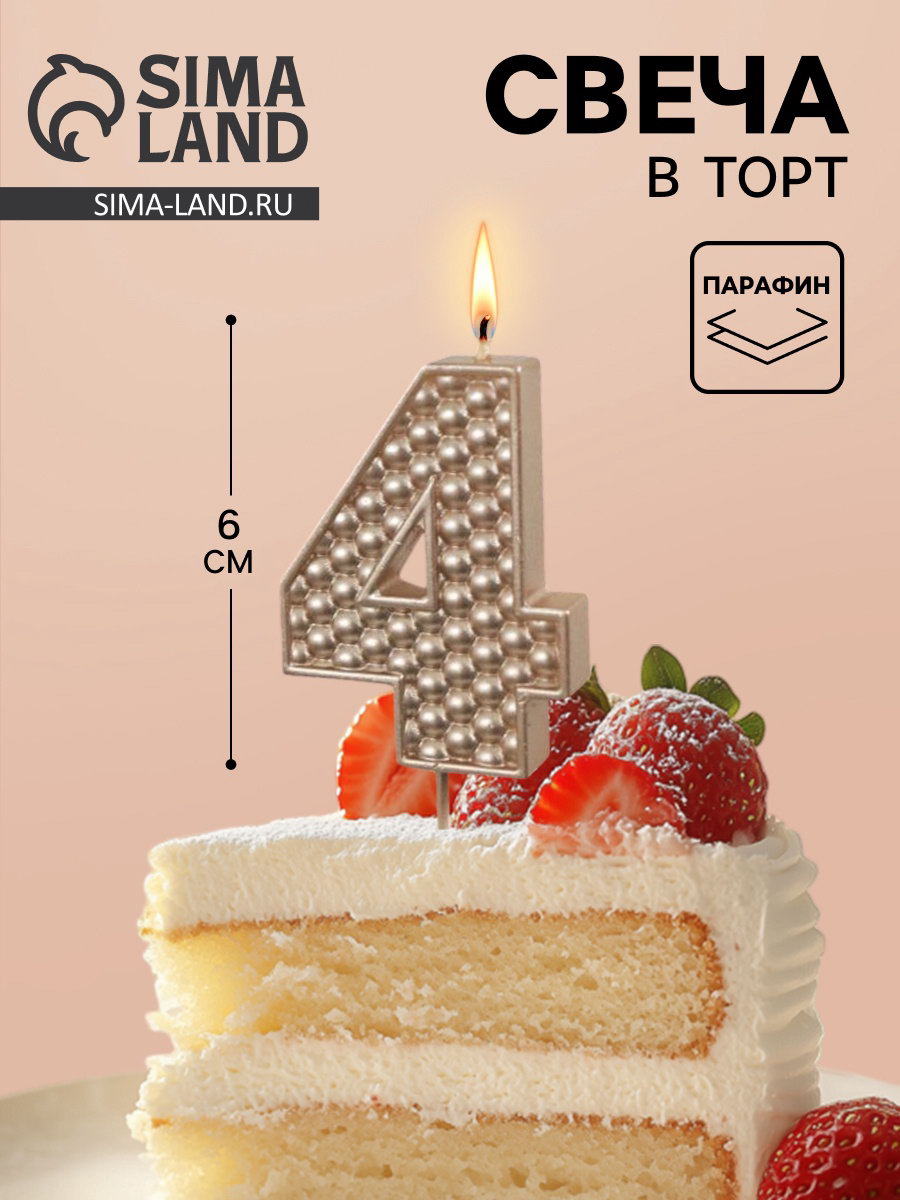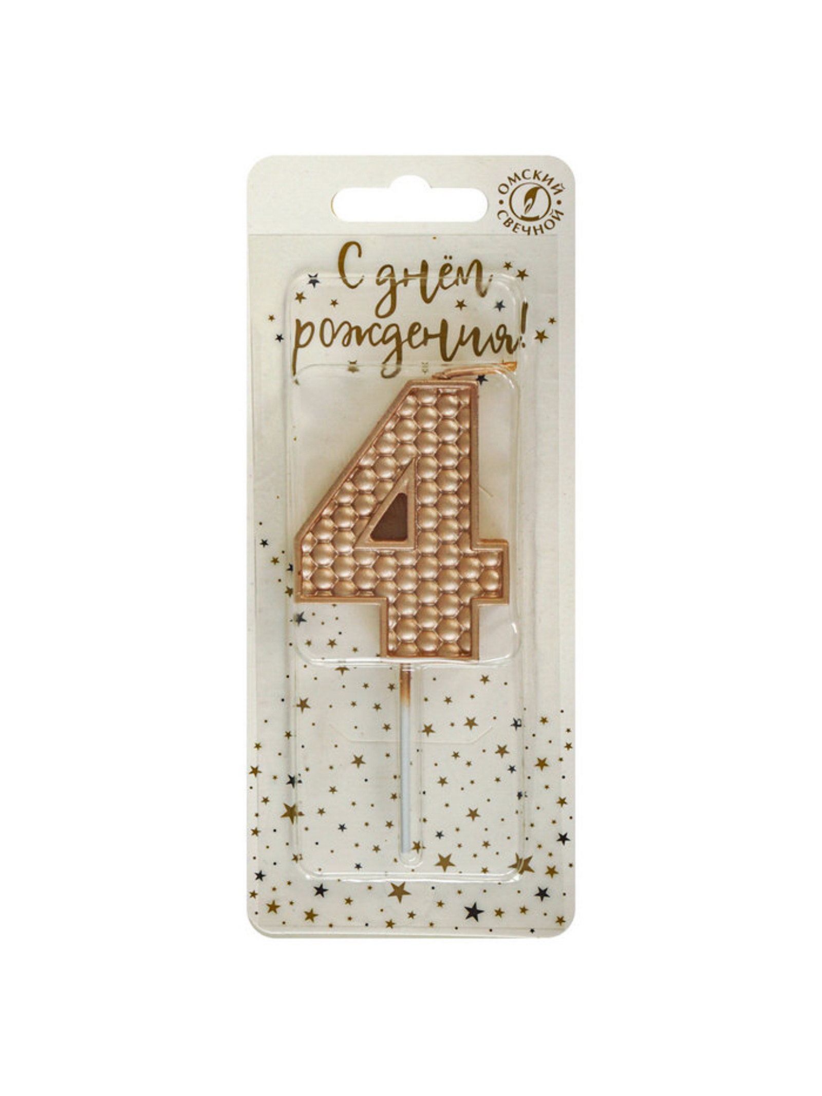 Свеча в торт на шпажке "Жемчужная", цифра 4, шампань, Омский свечной завод, Россия