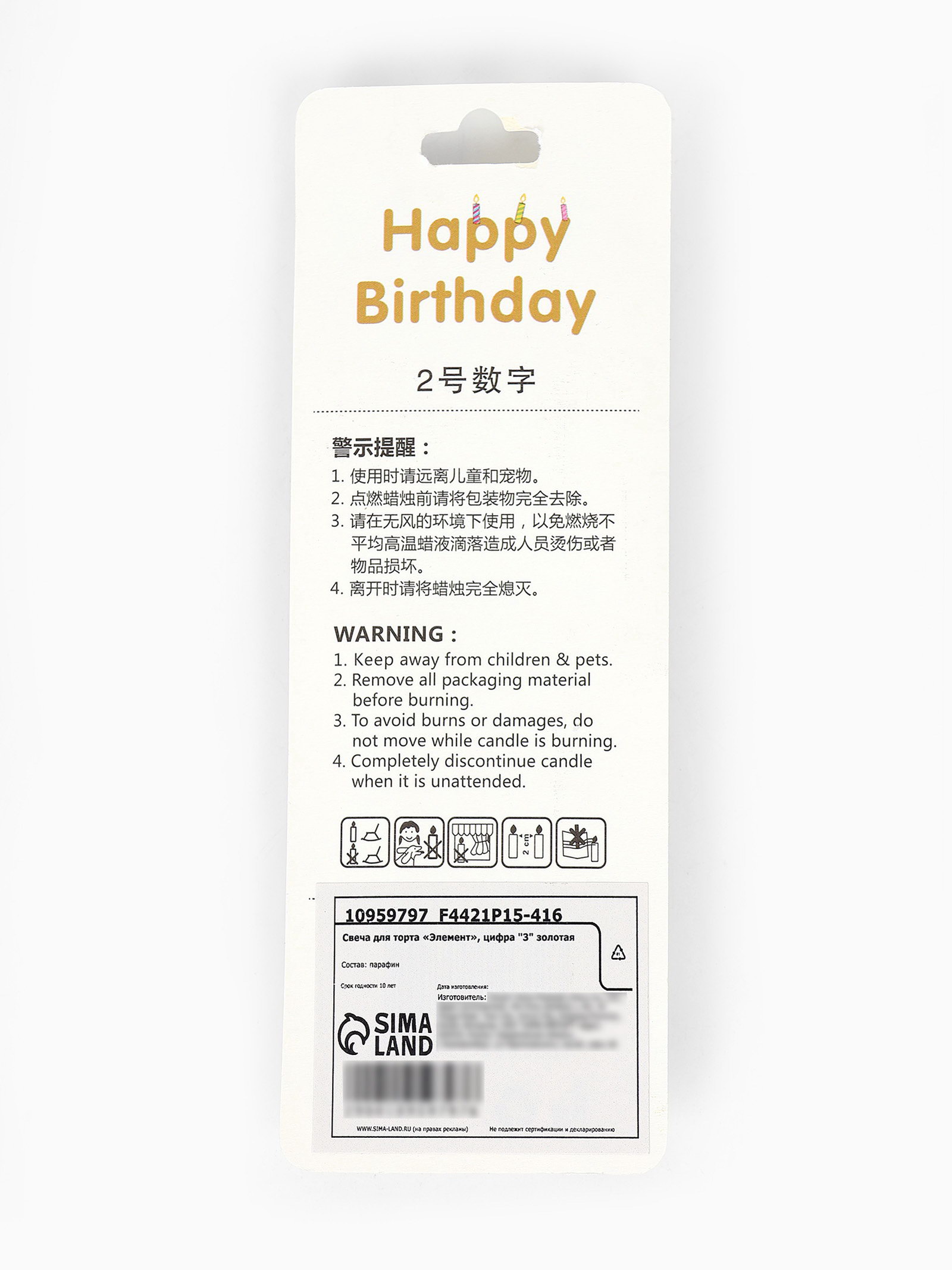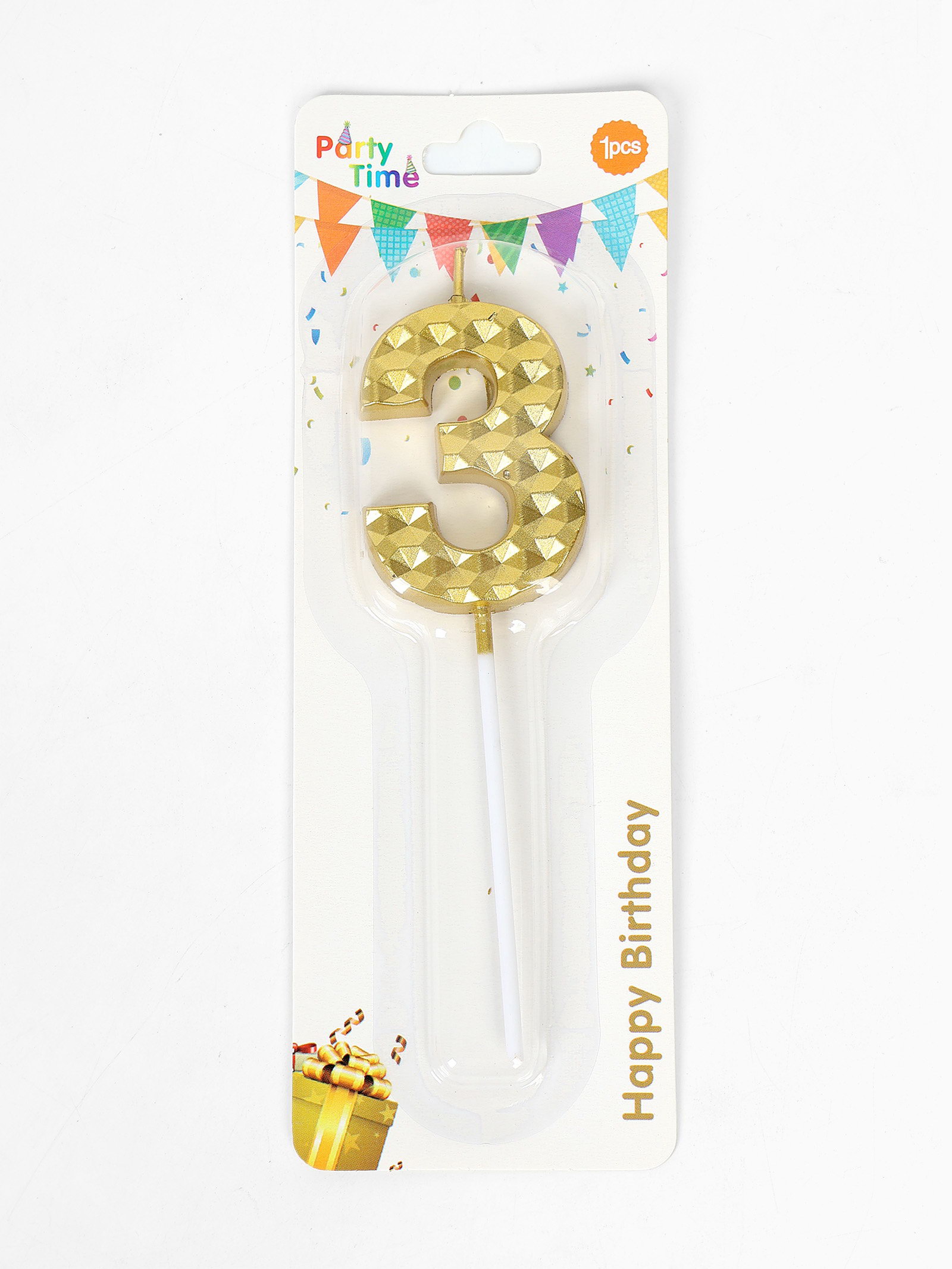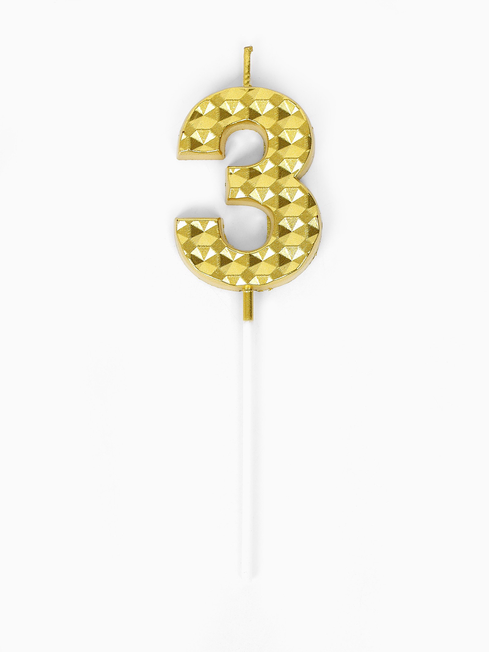 Свеча для торта "Элемент", цифра 3, золотая, 1x5.8x16.5 см., Китай