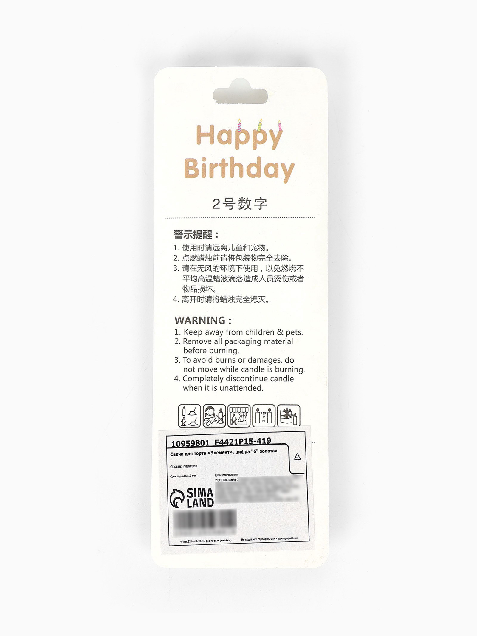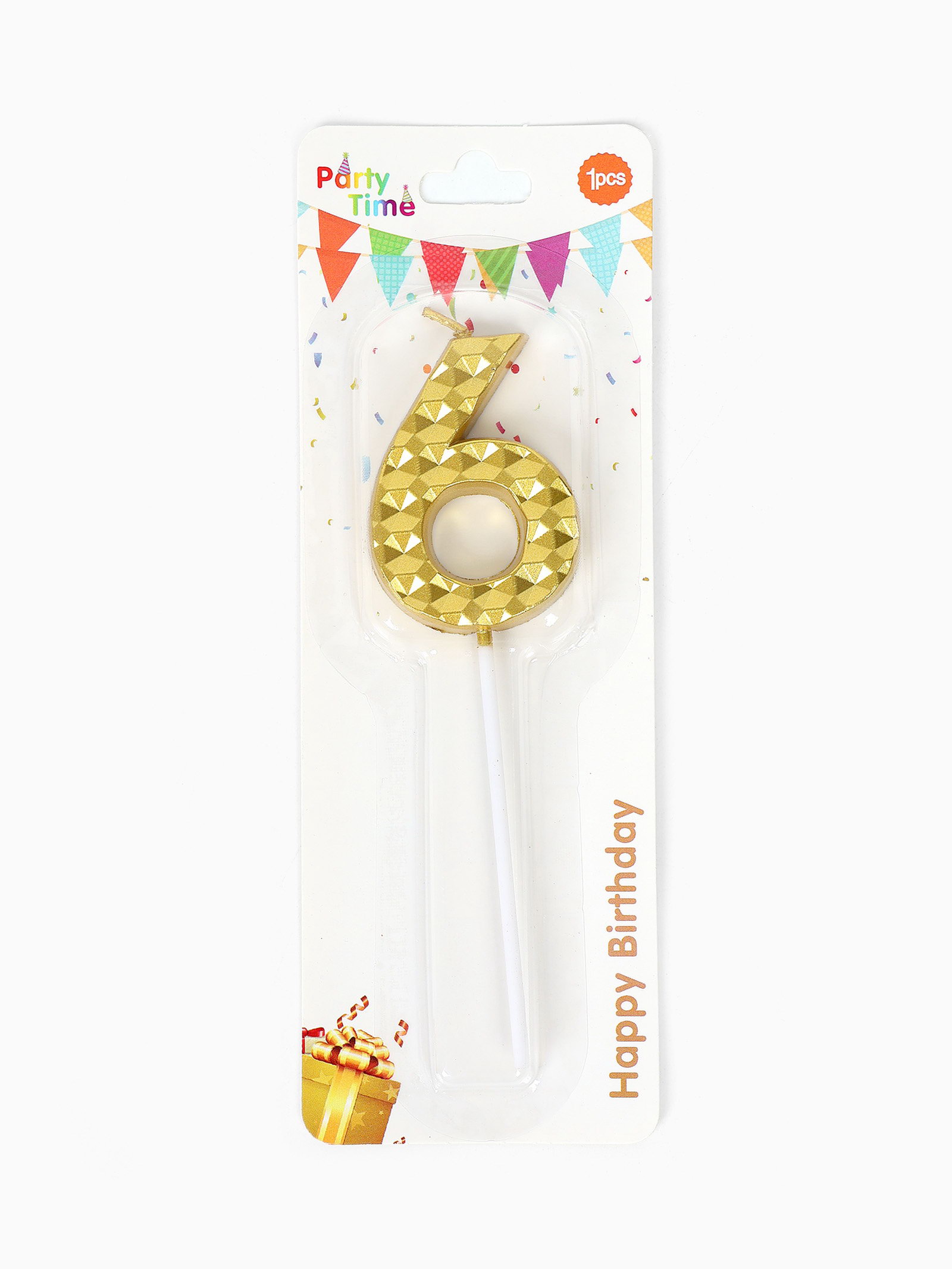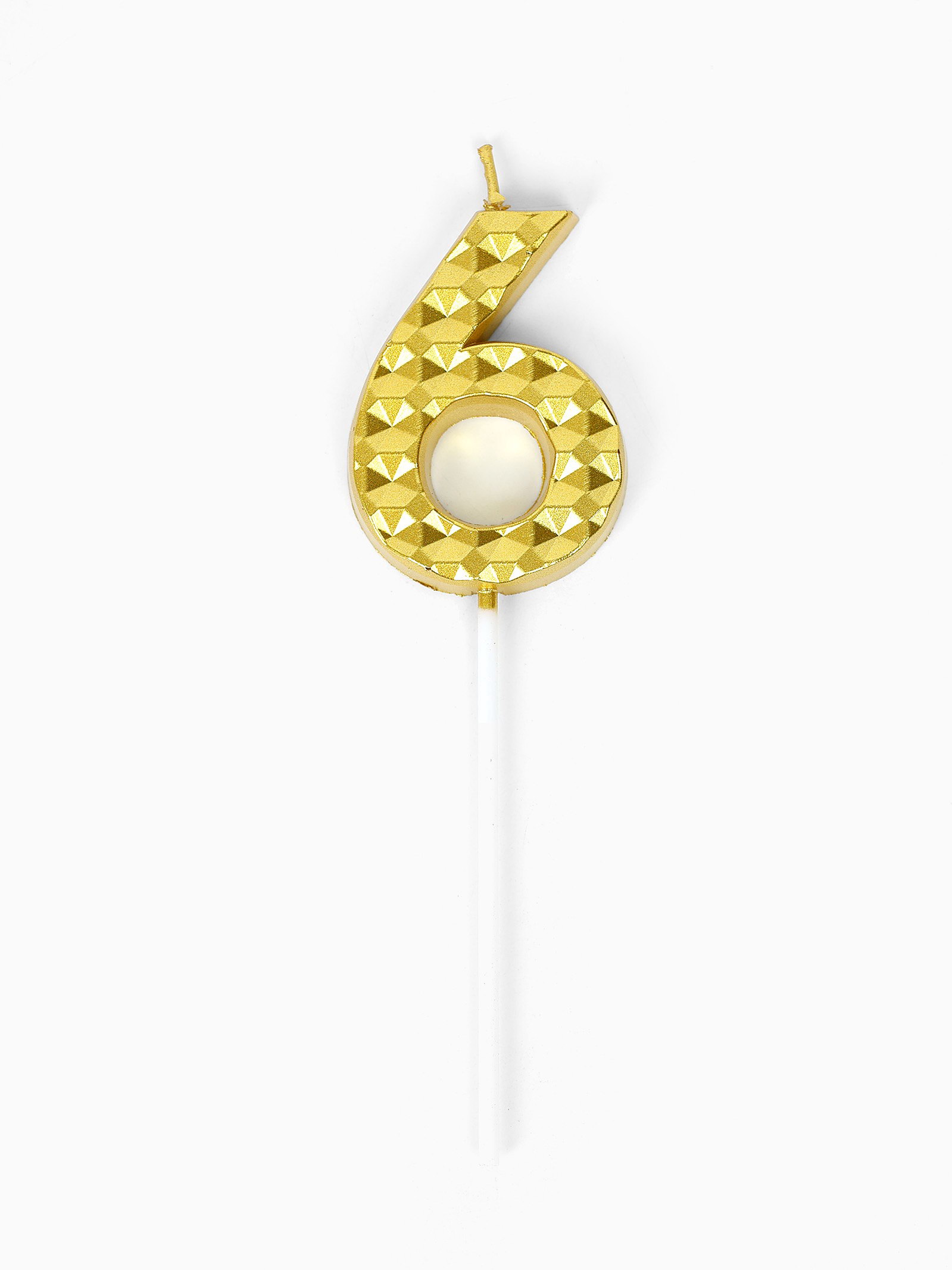 Свеча для торта "Элемент", цифра 6, золотая, 1x5.8x16.5 см., Китай
