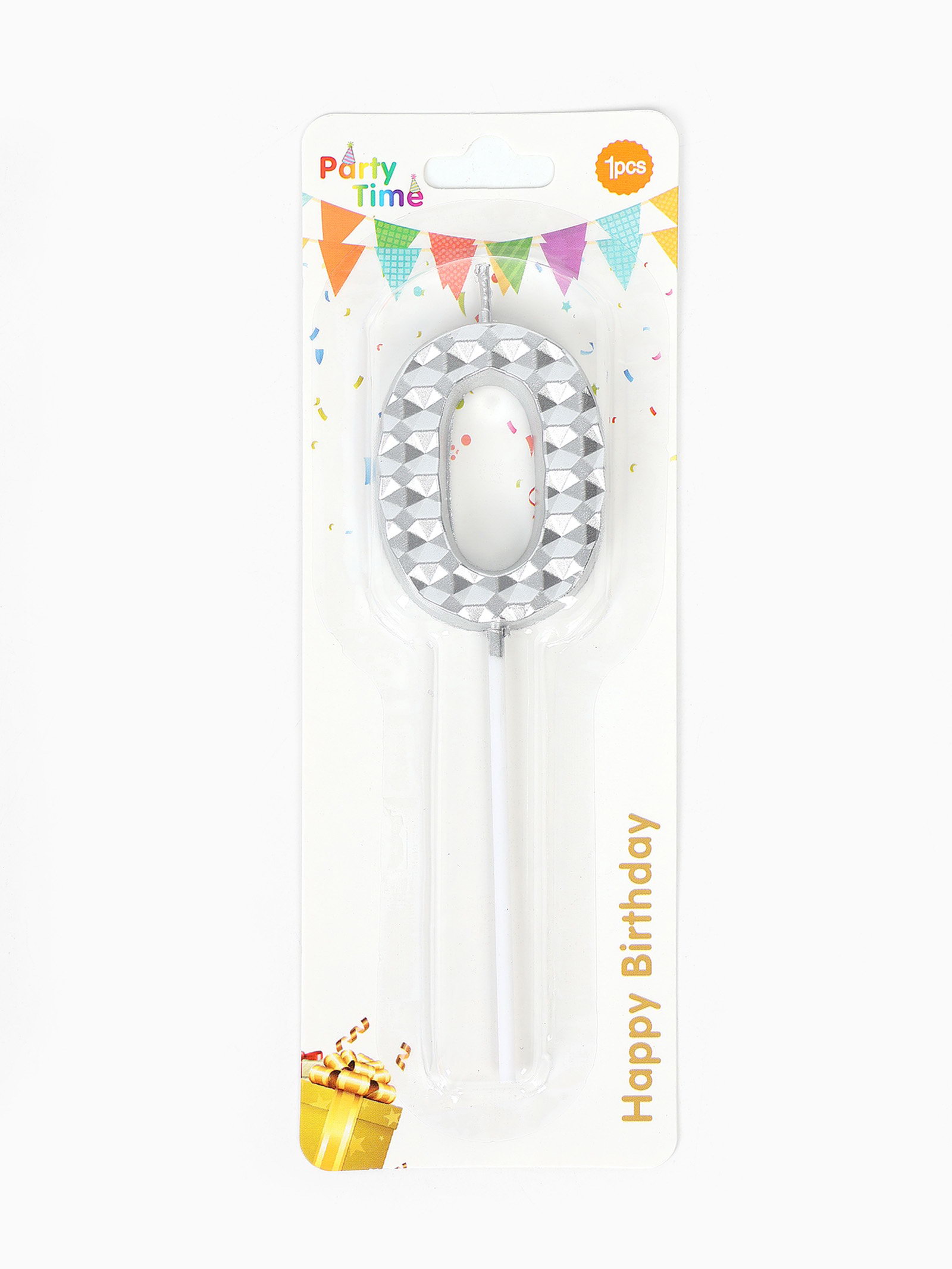 Свеча для торта "Элемент", цифра 0, серебро, 1x5.8x16.5 см., Китай