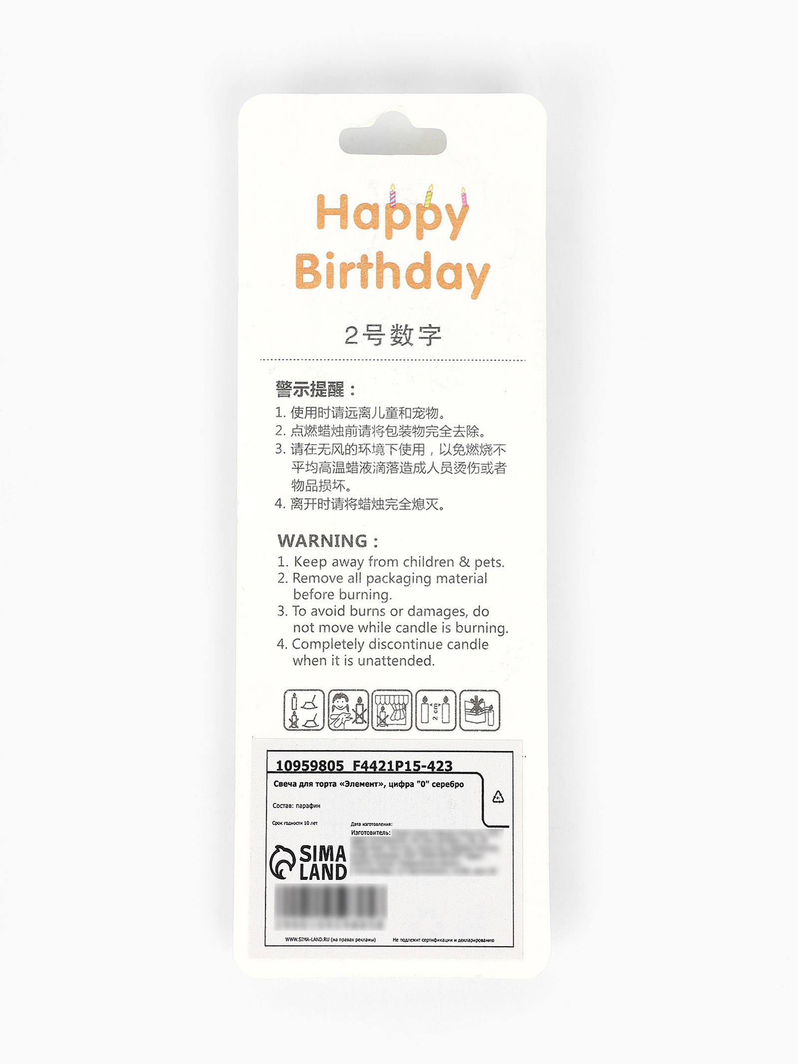 Размер упаковки: 1 x 16.5 x 5.5 см. tnved: 3406000000 tnved: 3406000000 Состав: Парафин Цвет: Серебристый | ||