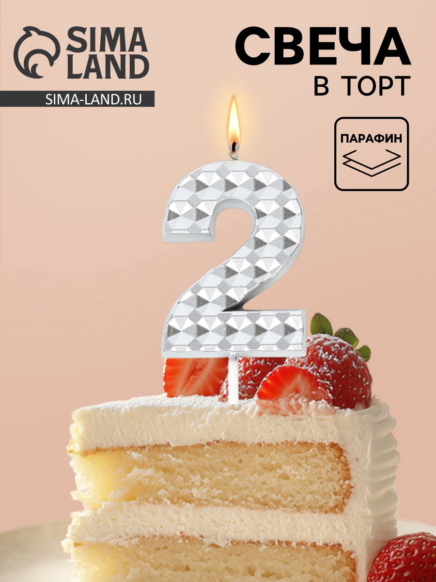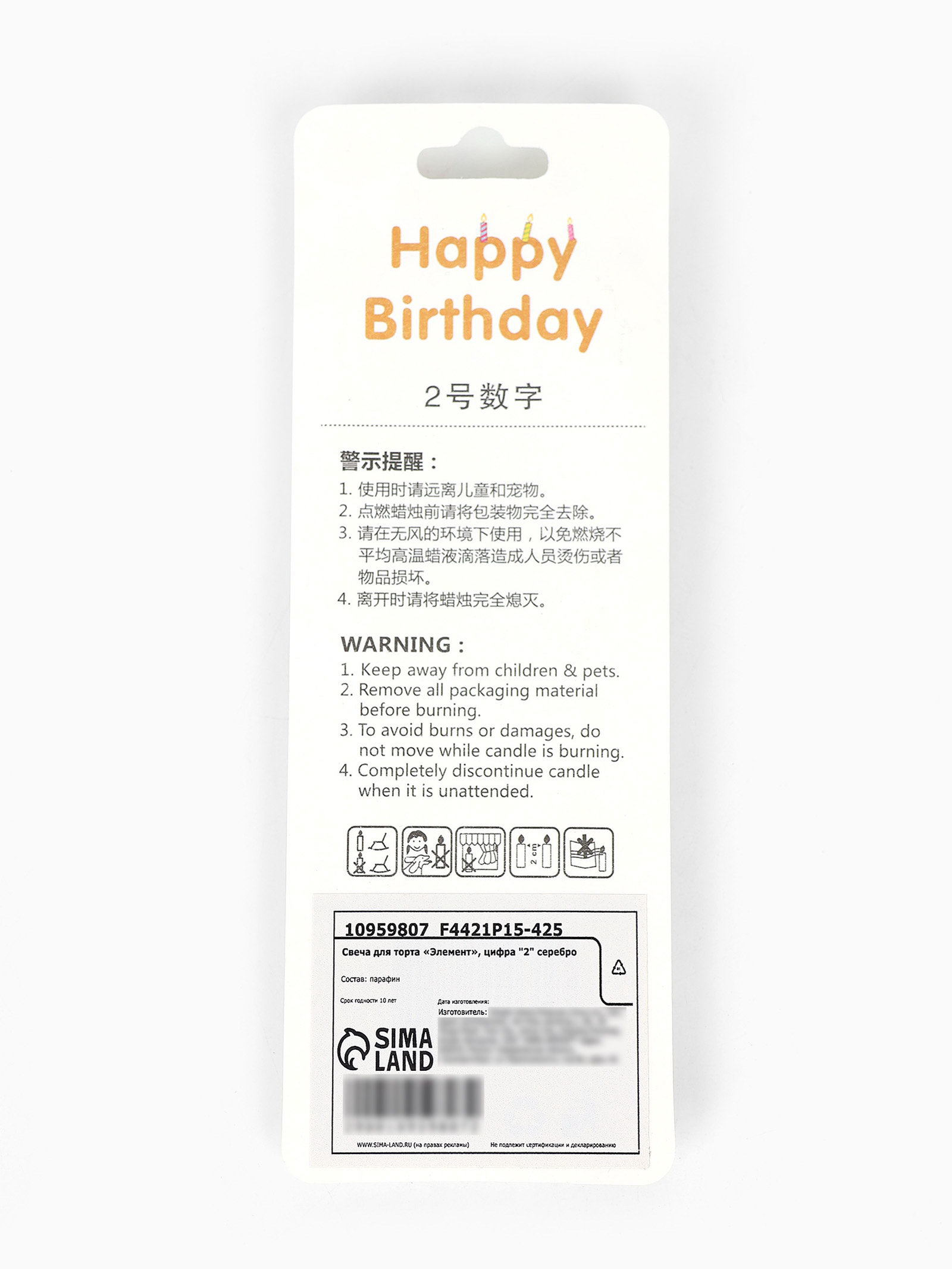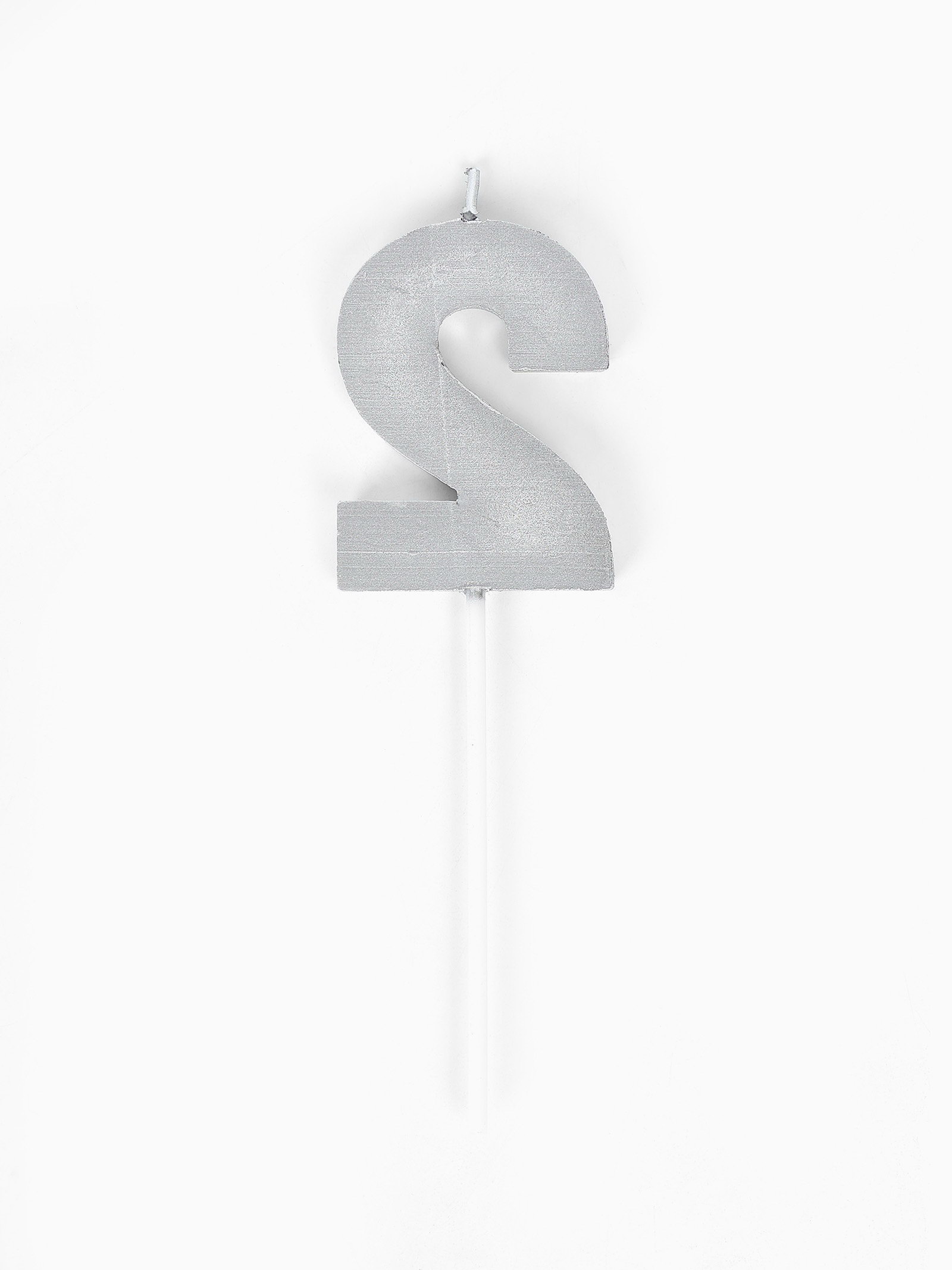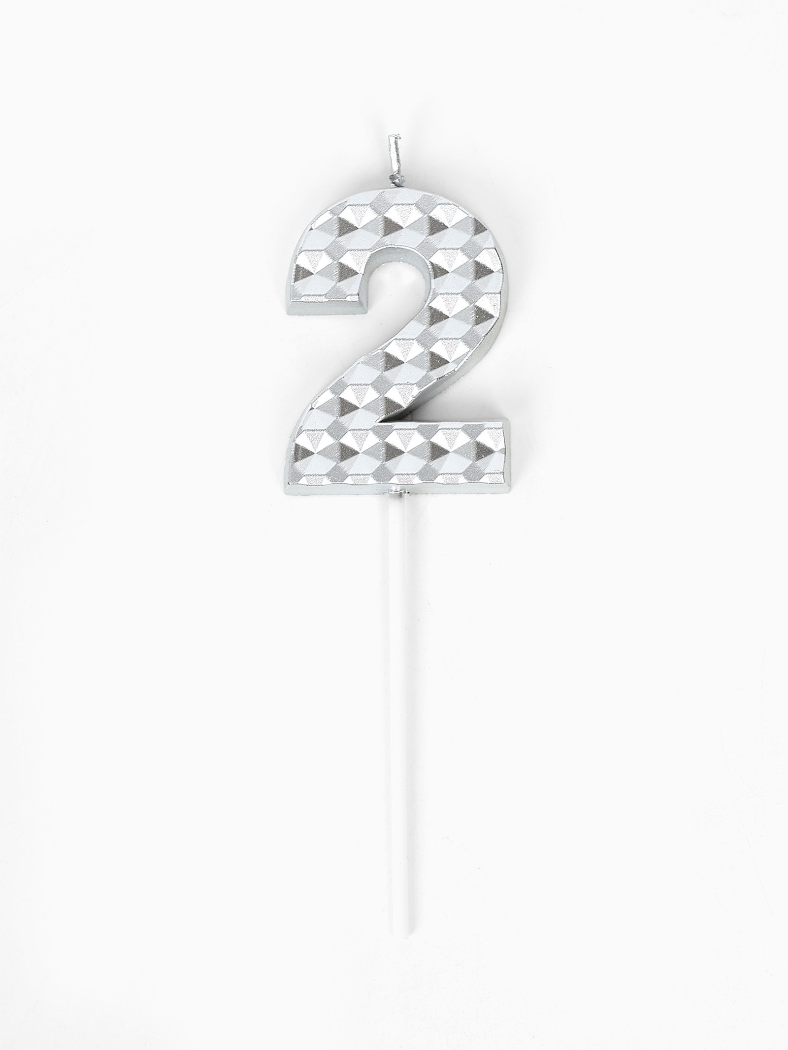 Свеча для торта "Элемент", цифра 2, серебро, 1x5.8x16.5 см., Китай