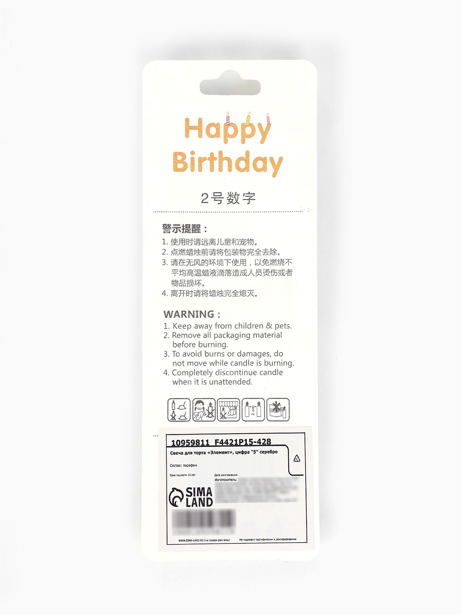 Свеча для торта "Элемент", цифра 5,серебро, 1x5.8x16.5 см., Китай
