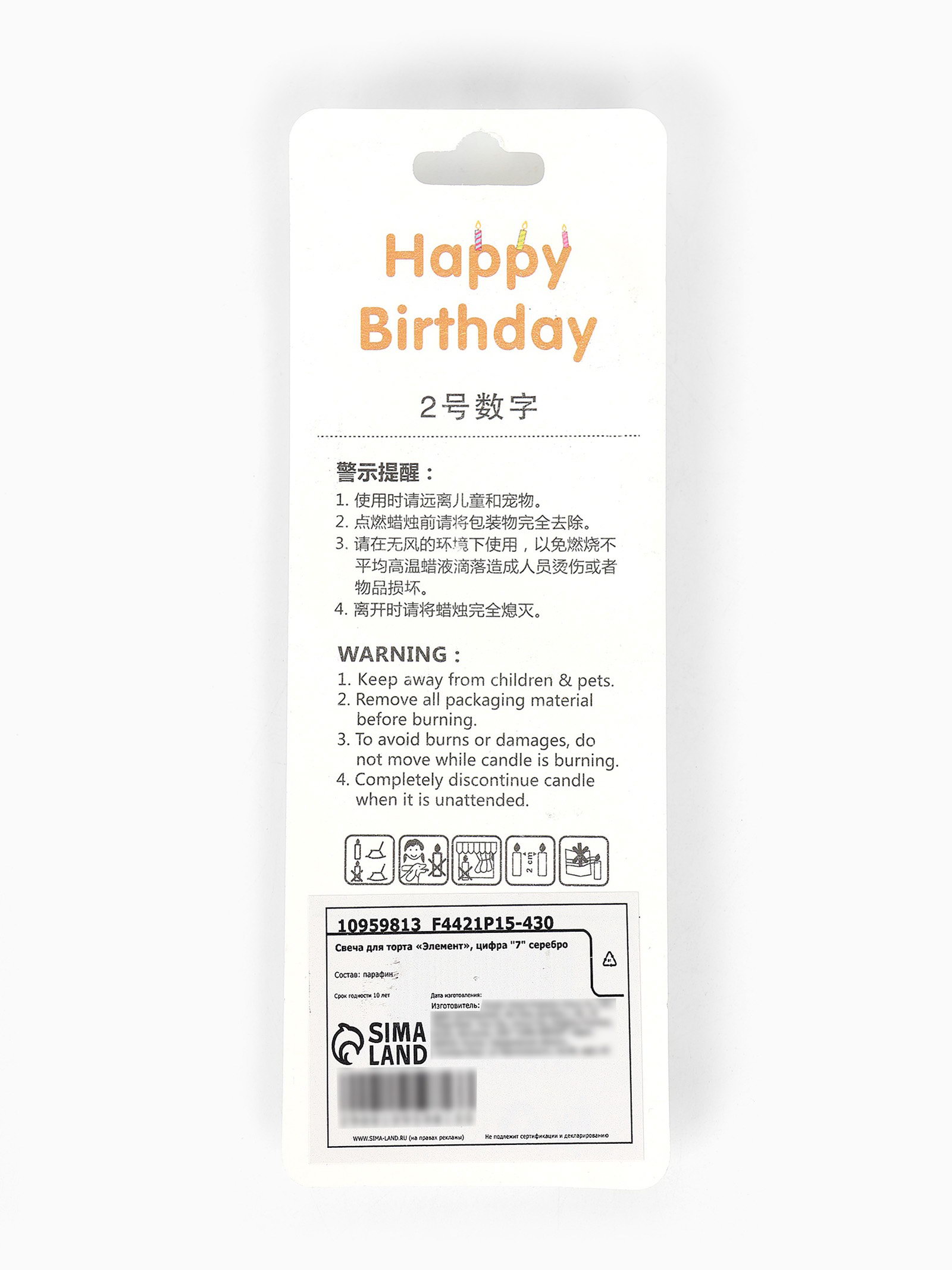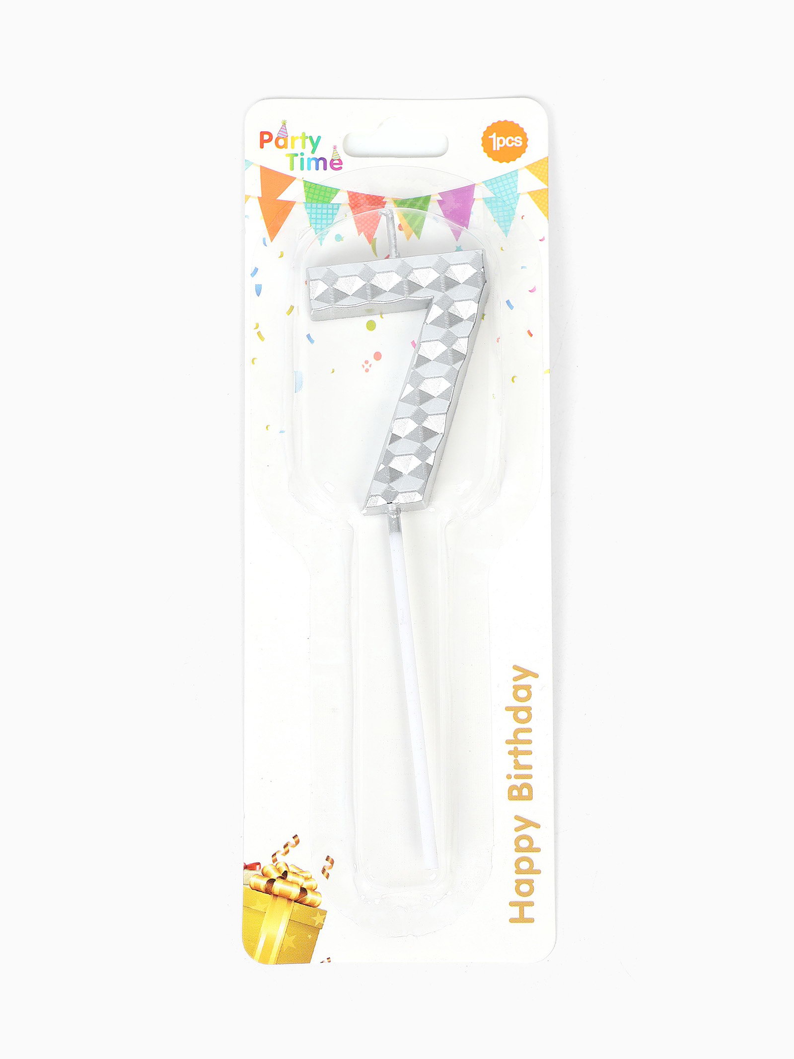 Свеча для торта "Элемент", цифра 7, серебро, 1x5.8x16.5 см., Китай