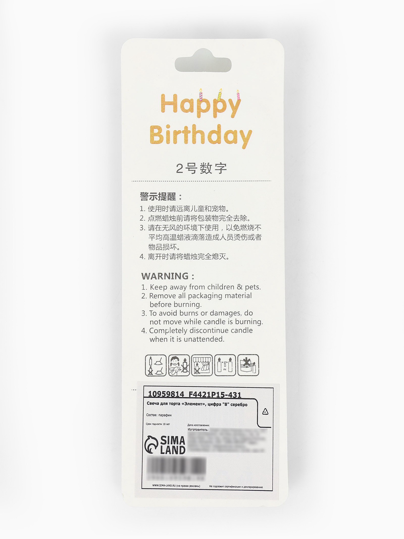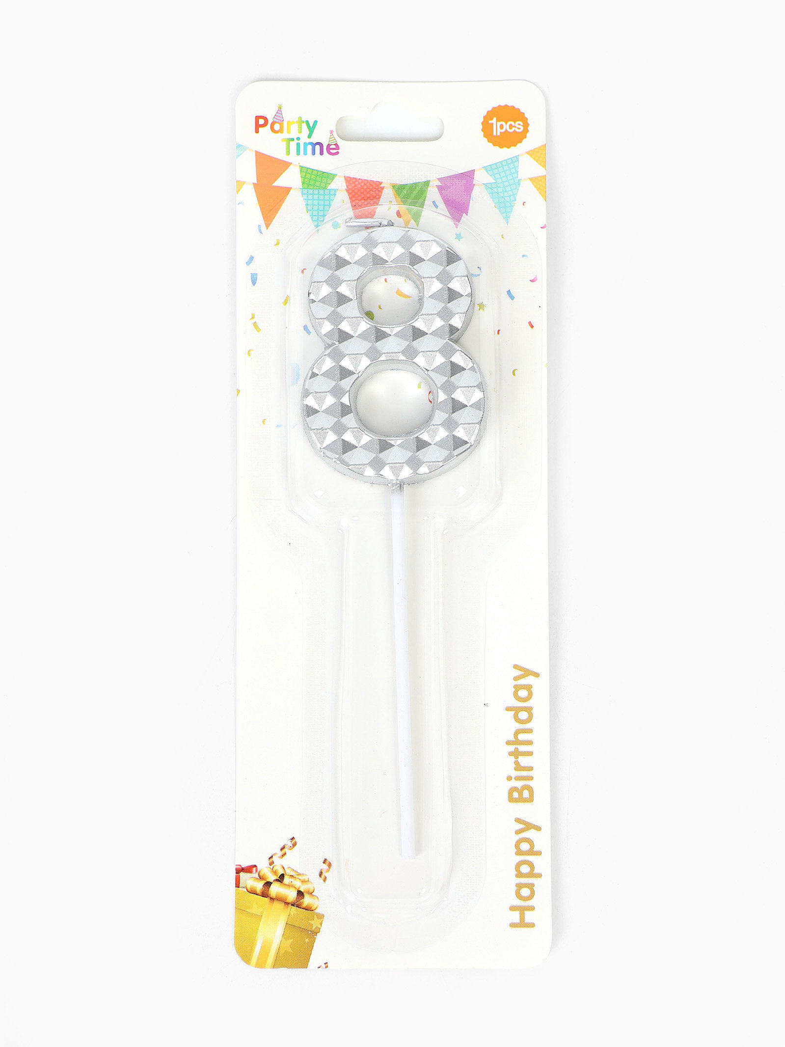 Свеча для торта "Элемент", цифра 8, серебро, 1x5.8x16.5 см., Китай