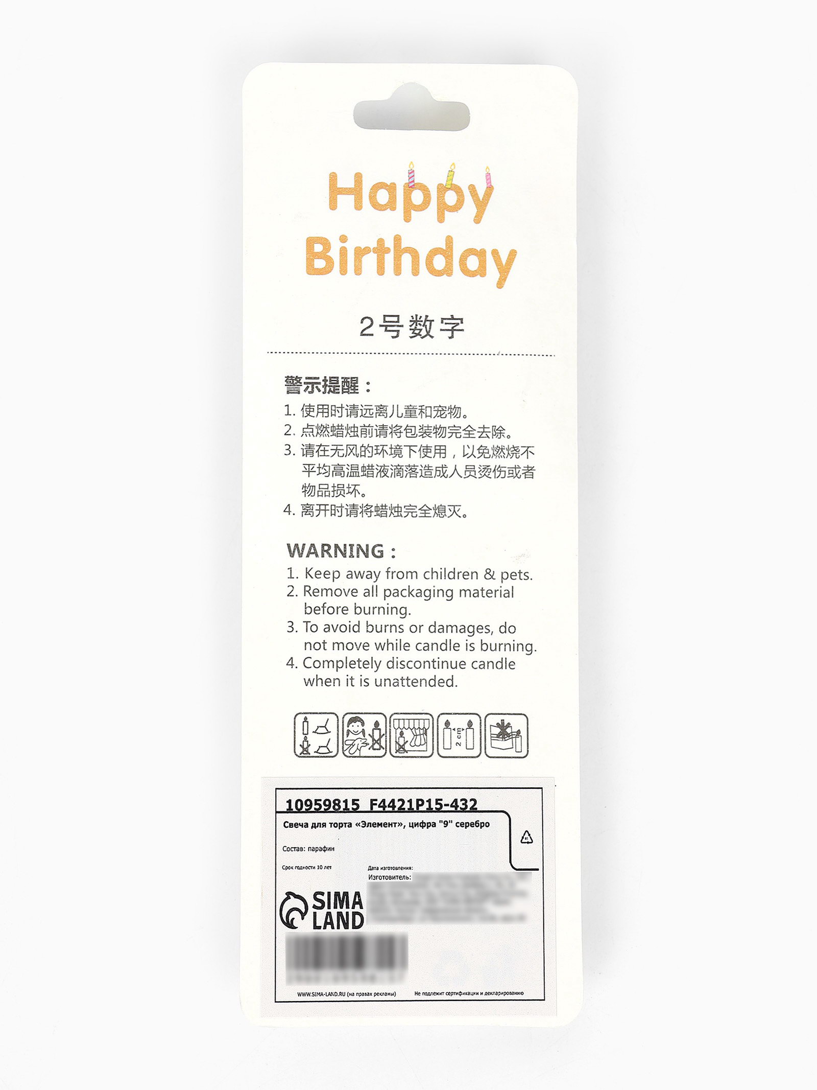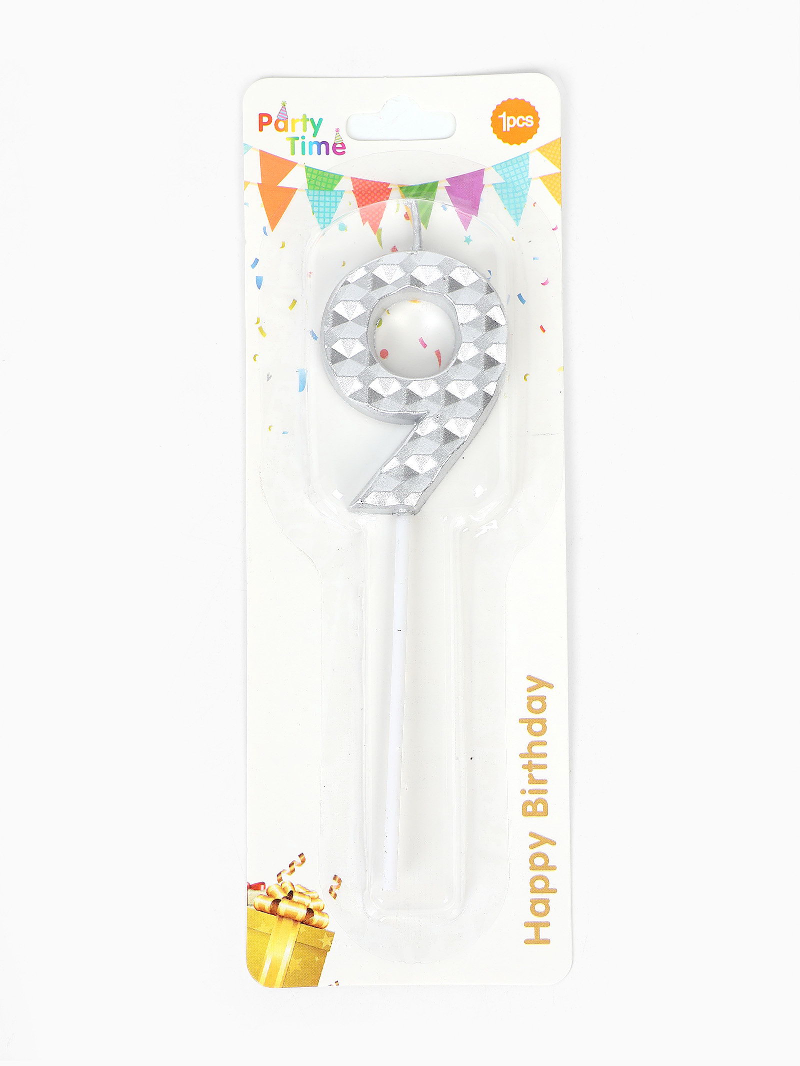 Свеча для торта "Элемент", цифра 9, серебро, 1x5.8x16.5 см., Китай