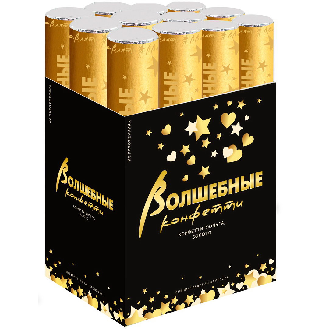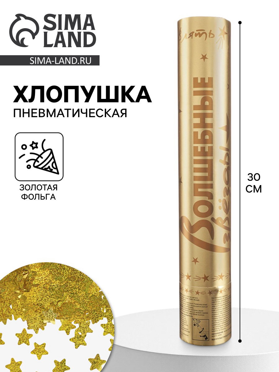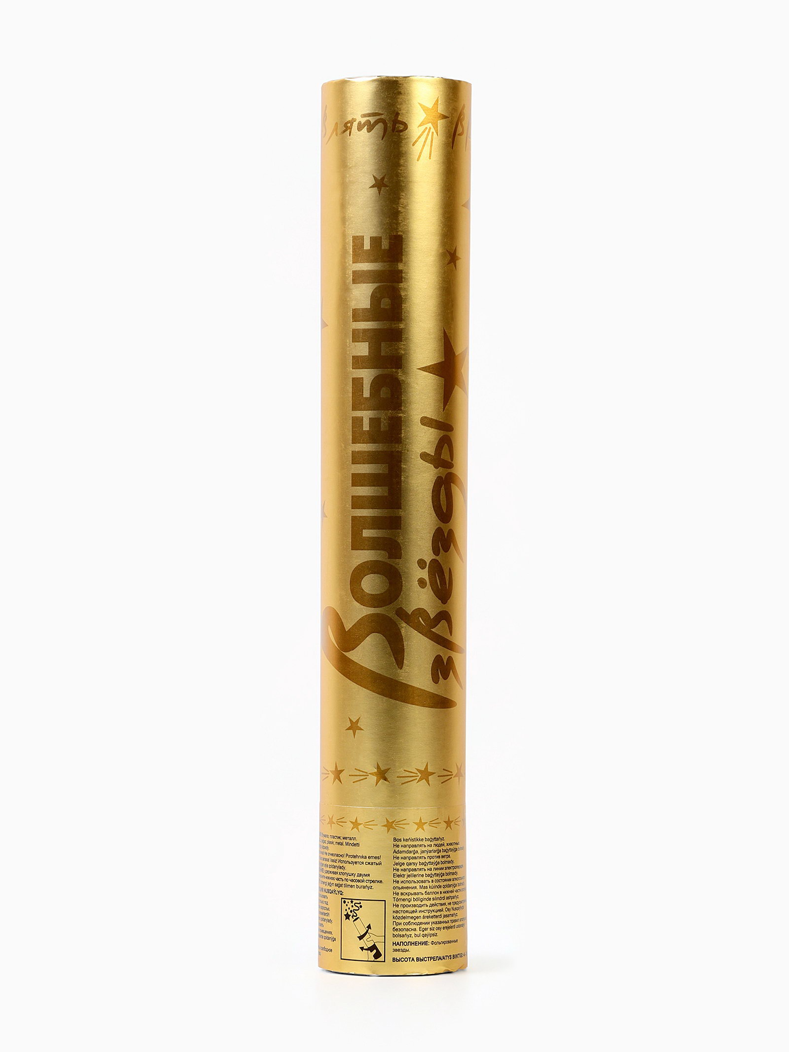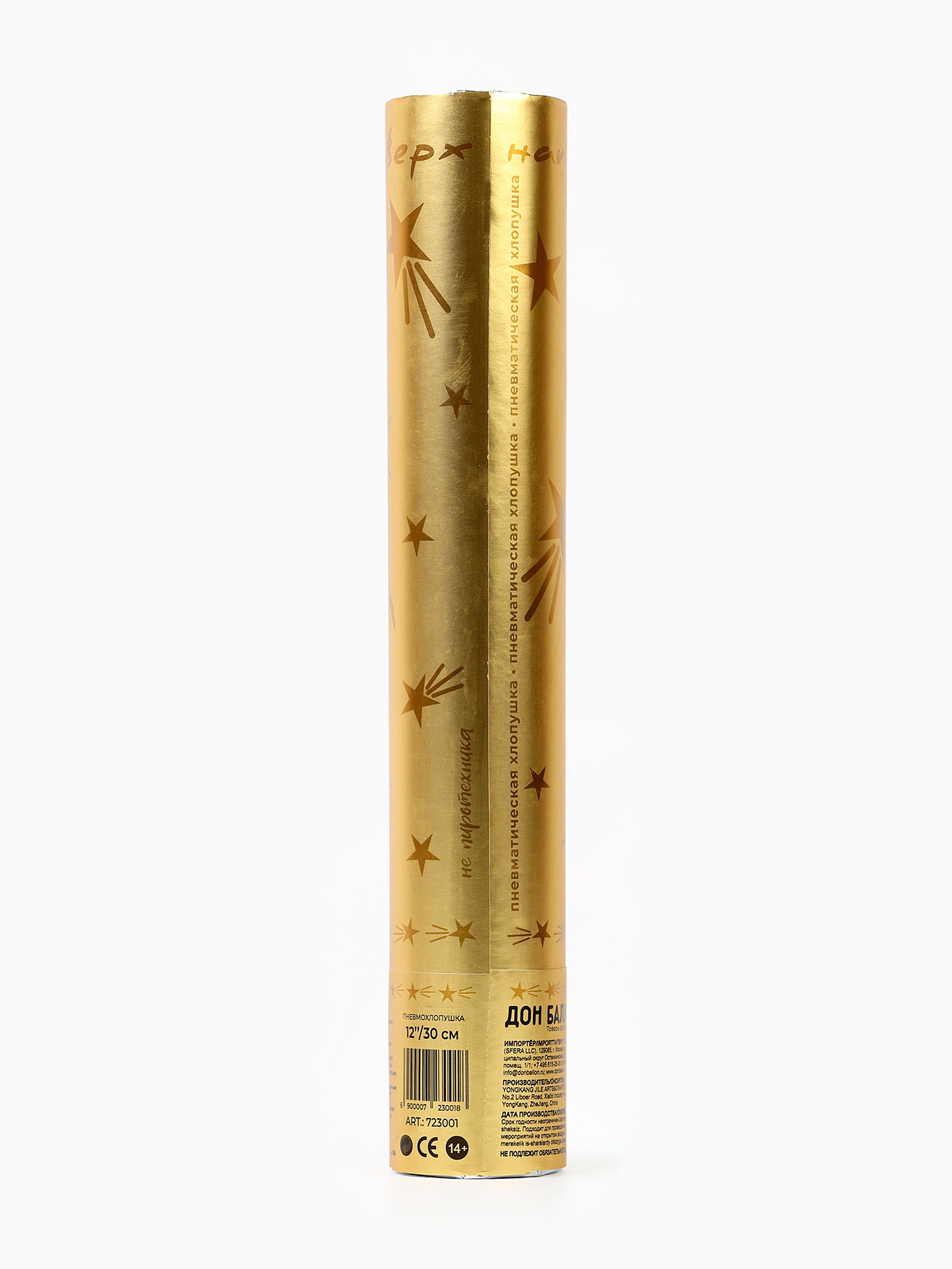 Хлопушка пневматическая "Звезды" фольга, золото, 30 см, Волна Веселья, Китай