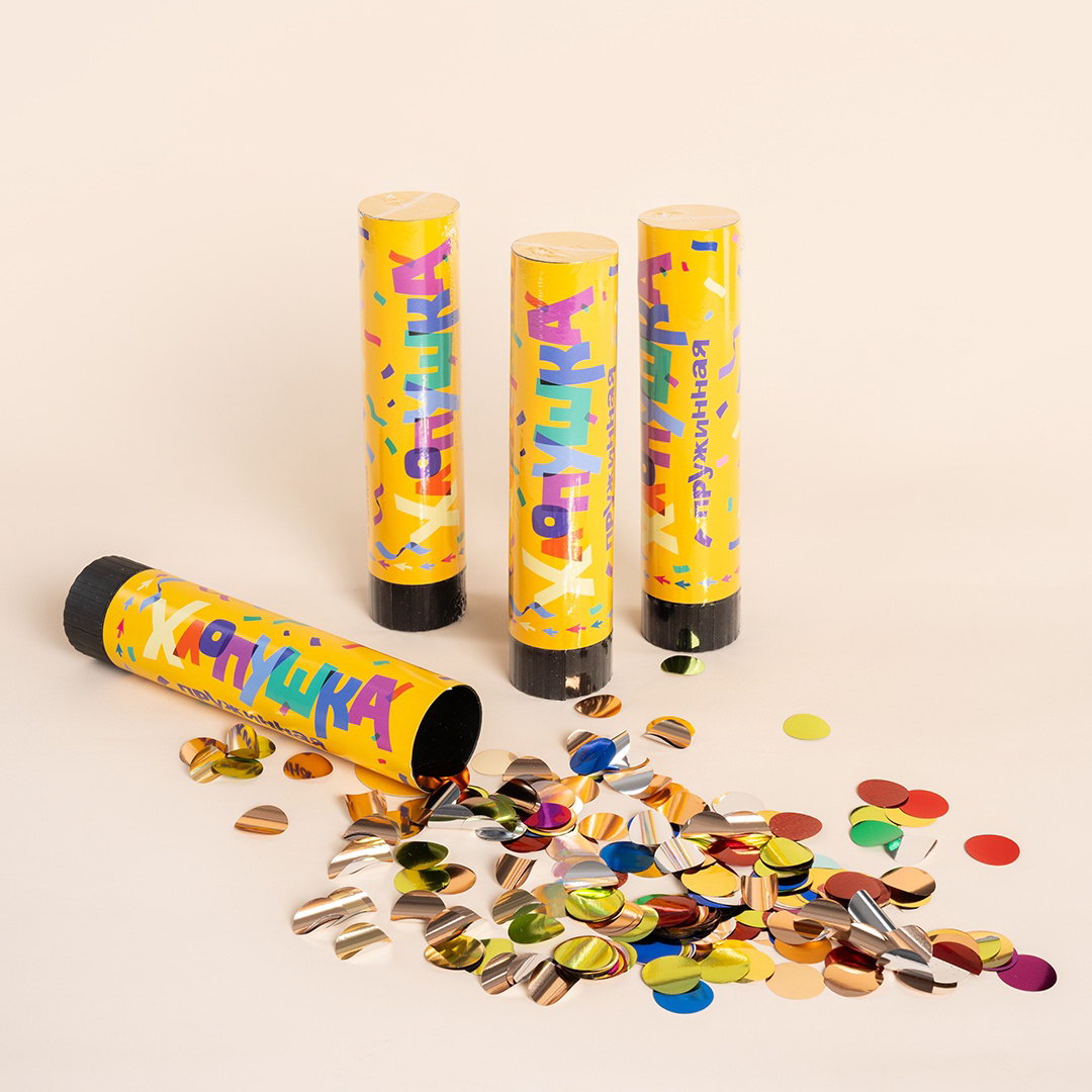 Хлопушка пружинная "Круги", ассорти из фольги, 20 см, Дон Баллон, Китай