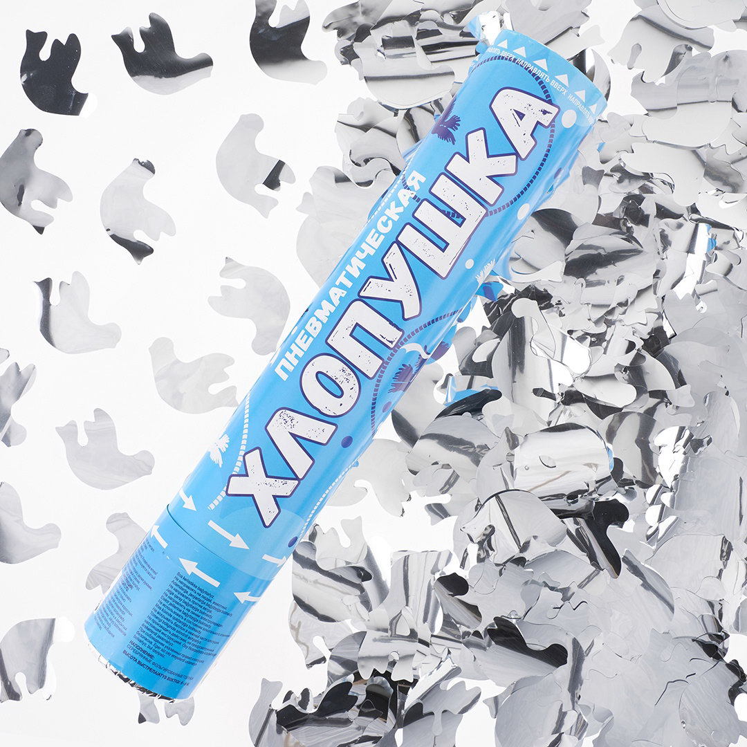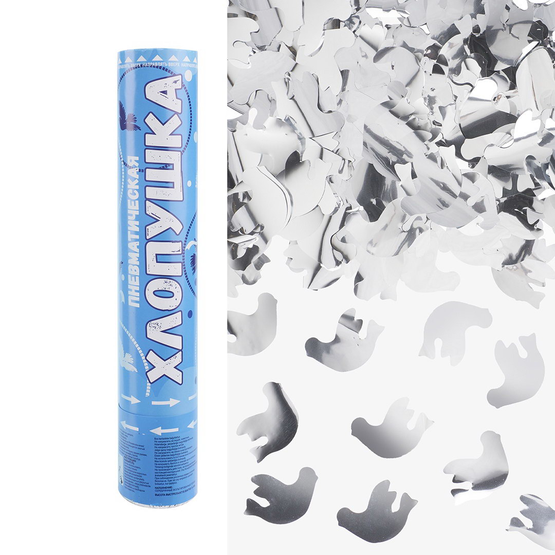 Хлопушка пневматическая "Голуби", фольга, серебро, 30 см, Дон Баллон, Китай