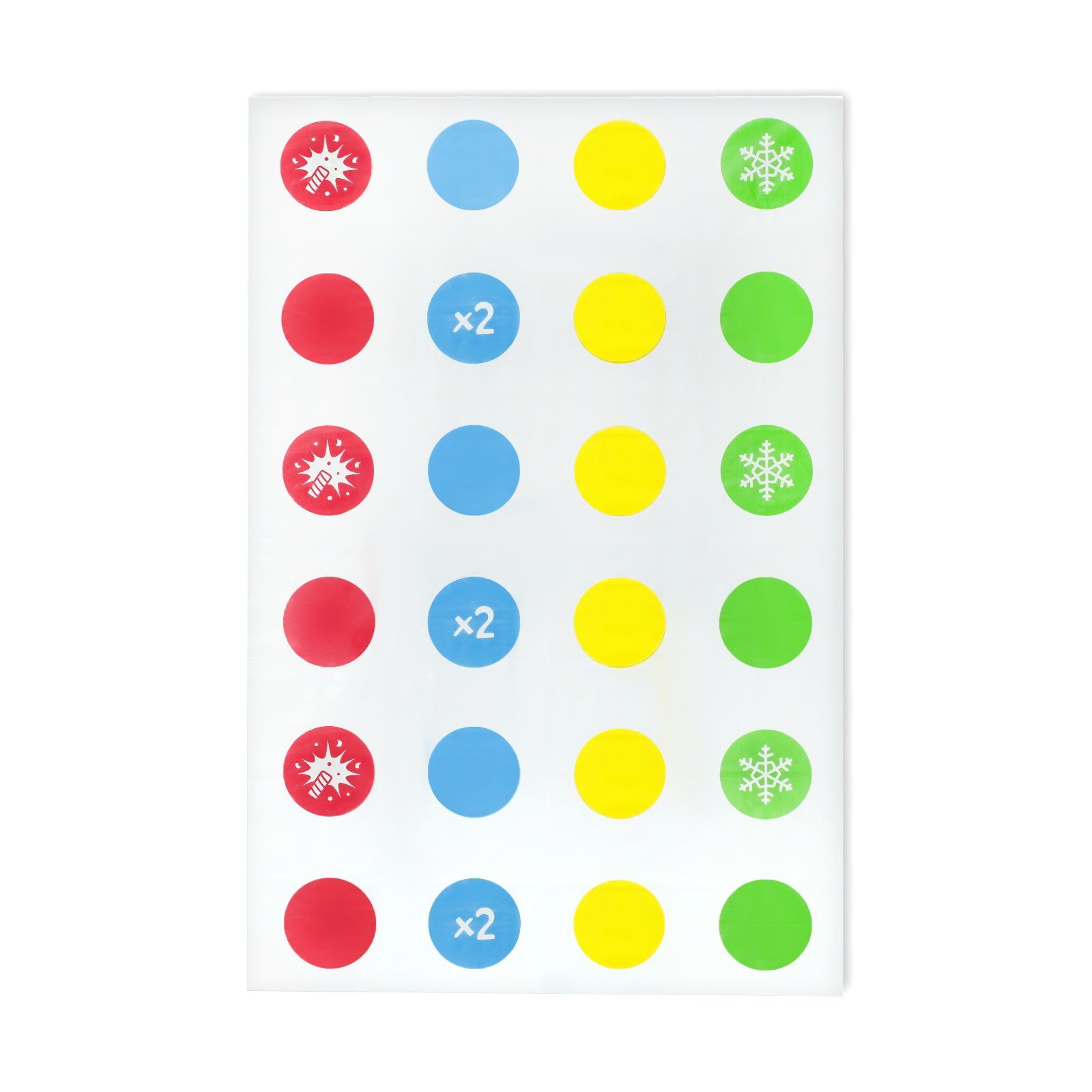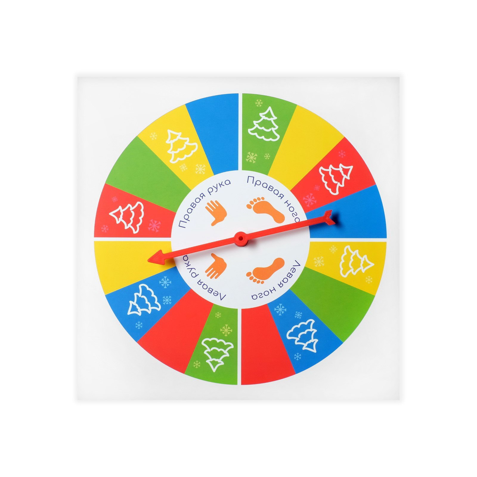 Как играть? Ведущий раскручивает рулетку стрелка укажет на цвет и часть тела игрока. Например, ведущий объявляет: "Левая рука на красное". Значит, игроку нужно поставить левую руку на любой красный кружок игрового поля. Затем ведущий вновь раскручивает рулетку и даёт задание следующему участнику. Также помимо обычных цветных кружков на поле есть специальные обозначения для дополнительных заданий. Например, задержать в воздухе одну из участей тела, продублировать то или иное действие и не только. На рулетке есть особые сектора, на которых нарисована ёлочка. Если вам выпал этот сектор, вы вытягиваете карточку с фантом и выполняете его! Внутри вы найдёте