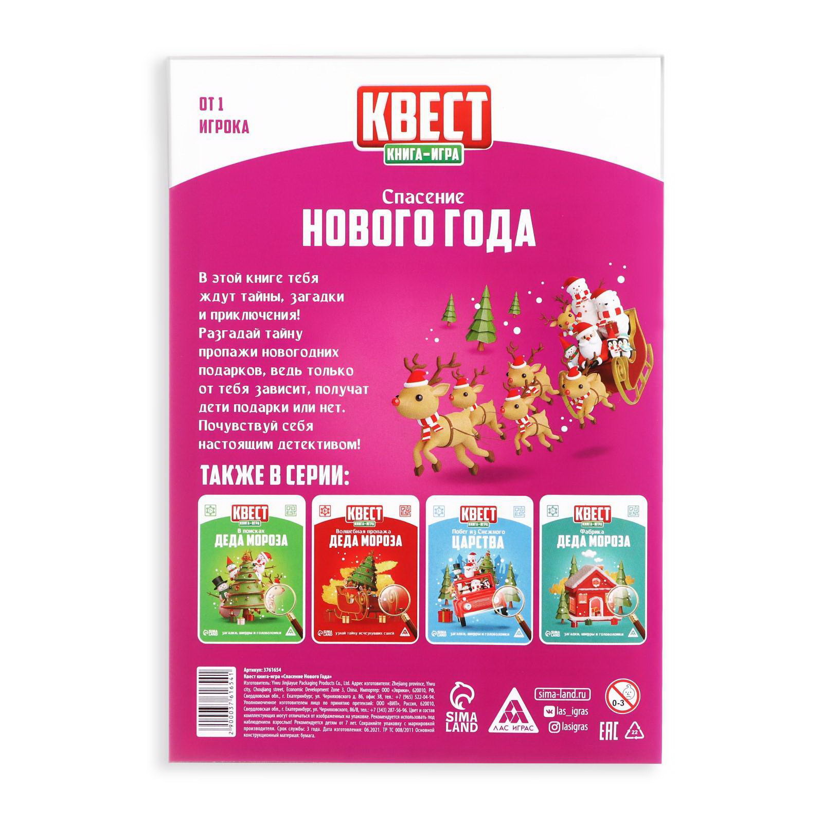 Квест-книга игра новогодняя "Спасение Нового года", на Новый год, 22 страницы, ЛАС ИГРАС, Китай