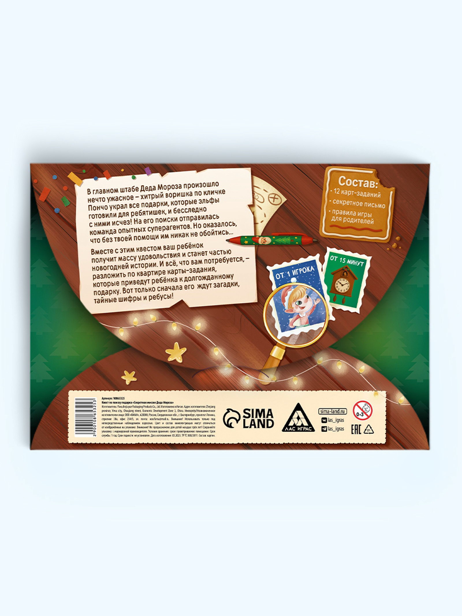 Размер упаковки: 20.5 x 15 x 1 см. tnved: 9504400000 Возраст: От 5 лет Жанр игры: Квесты и психологические Время игры: 15 минут Количество игроков: От 2 игроков | ||