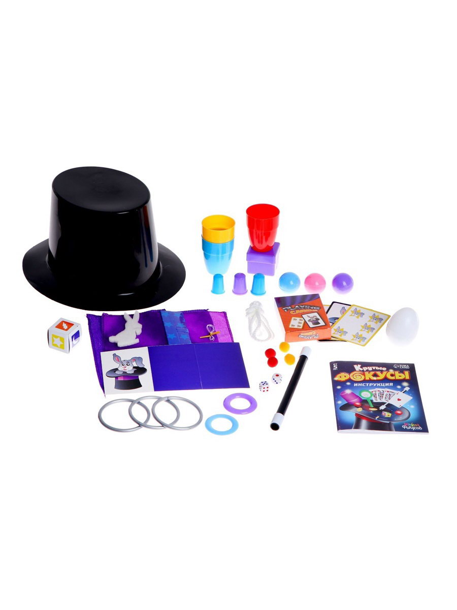 Размер упаковки: 17 x 24 x 28 см. tnved: 9505900000 tnved: 9505900000 Возраст: От 6 лет Приветствуем юных фокусников! Этот набор перенесёт вас в мир захватывающих шоу! С ним вы сможете разыграть своих близких. Создавайте уникальные образы, невероятные программы и поражайте публику. Повторяйте фокусы из инструкции, придумывайте свои и воплощайте их с помощью реквизитов из набора. Список фокусов