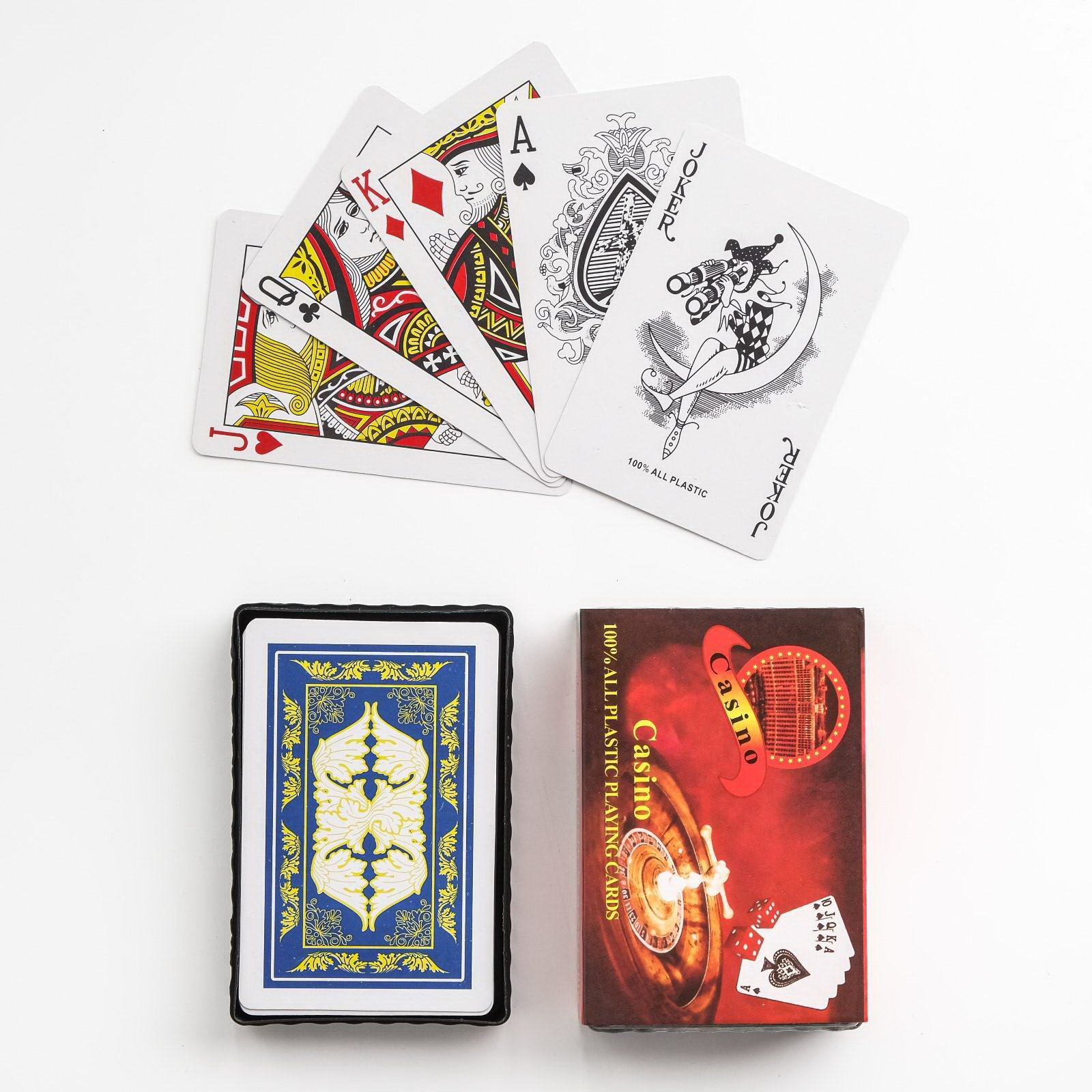 Карты игральные пластиковые "Рулетка", 54 шт, 25 мкм, 8.8 x 5.8 см, микс, 5.8x9x2 см., Китай