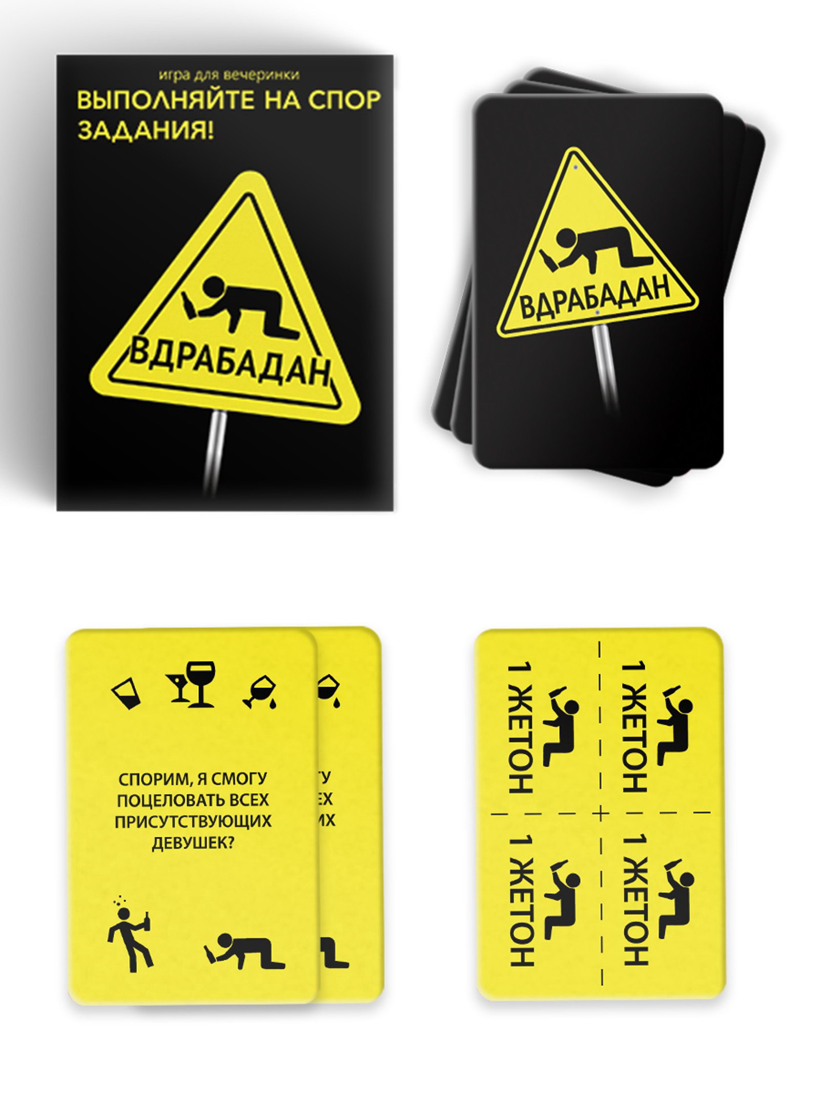 Цель игры: набрать большее количество жетонов! Выполняйте безумные задания на спор, делайте ставки и выигрывайте в настольной игре "Вдрабадан"! | ||