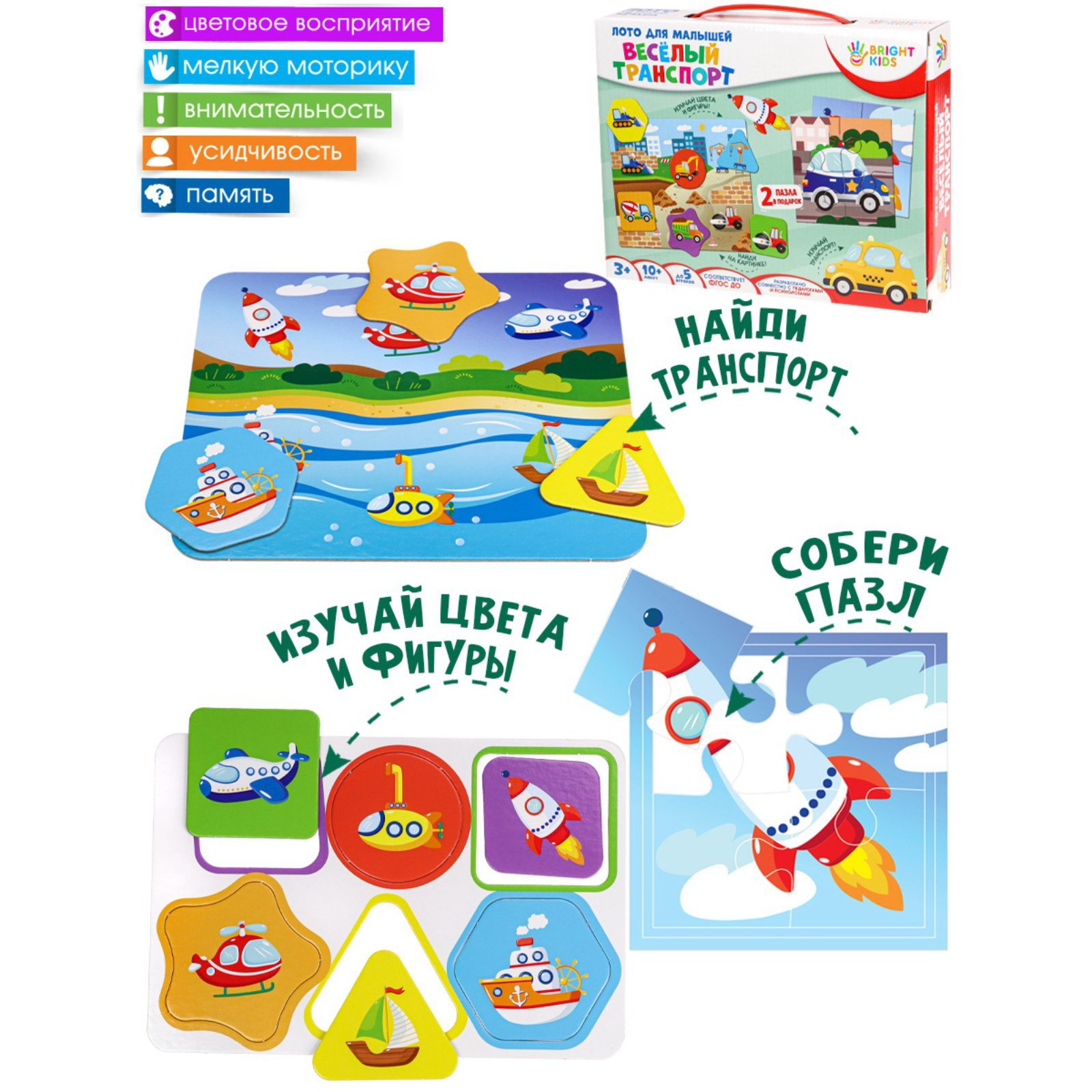 Лото для малышей "Весёлый транспорт", Рыжий кот, Россия
