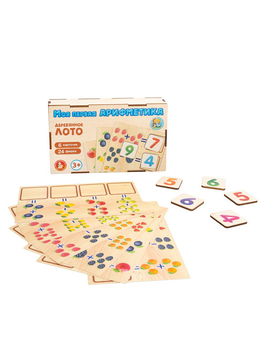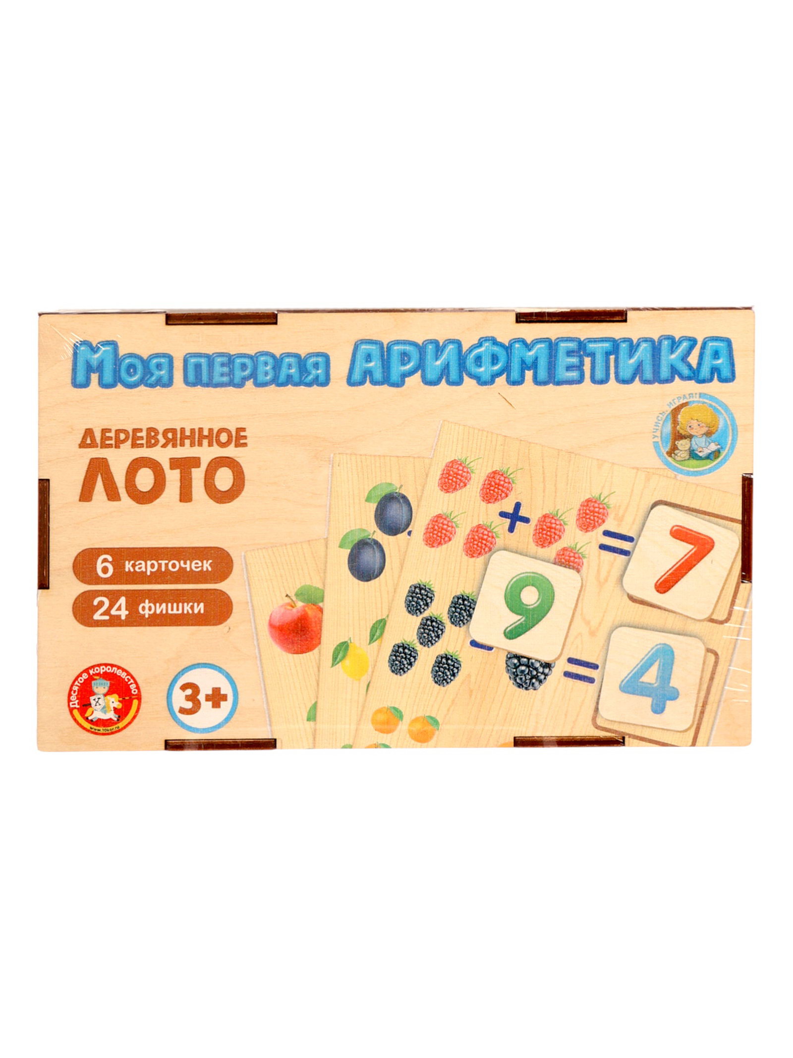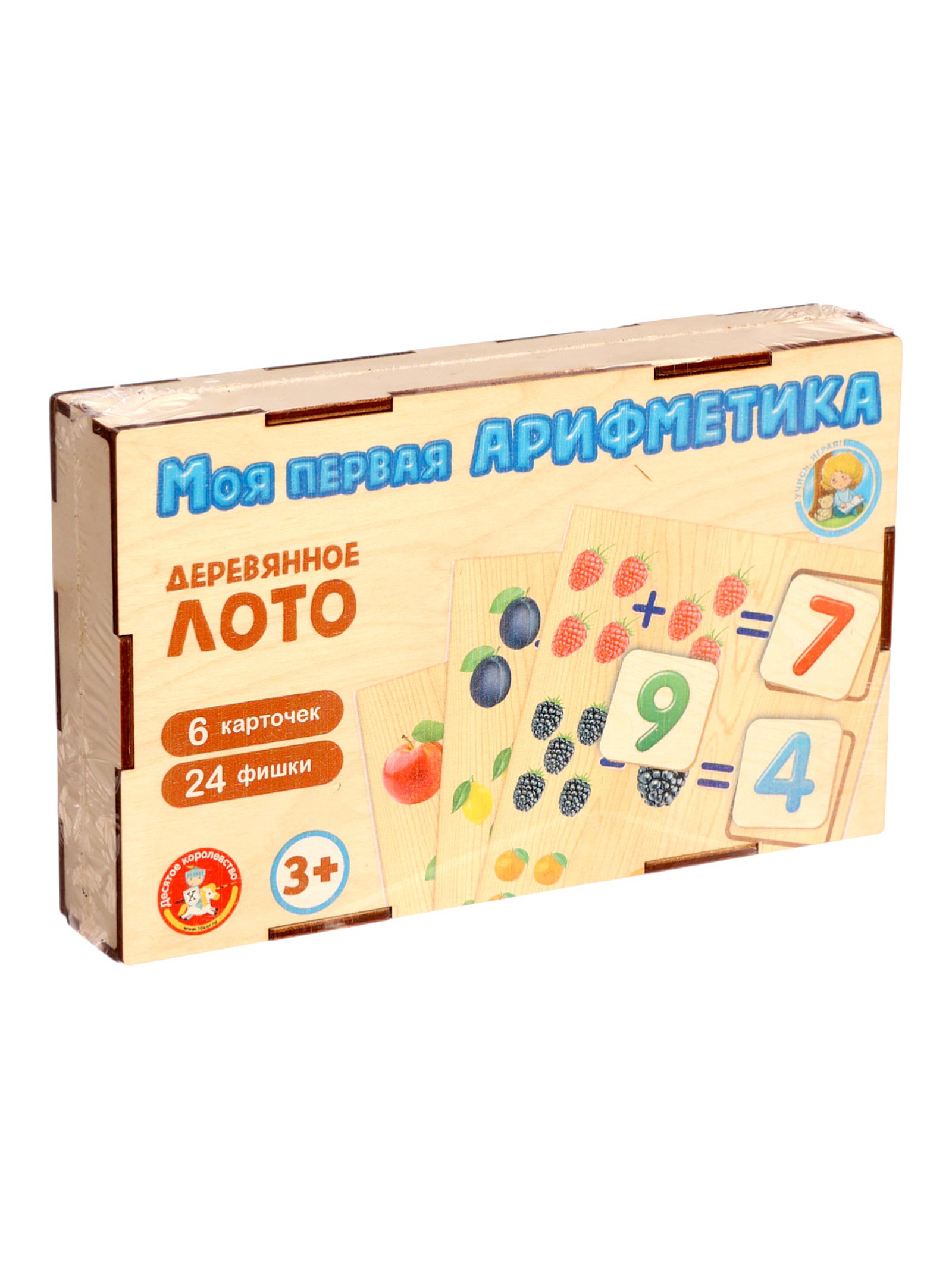 Лото "Моя первая арифметика", с деревянными фишками, Десятое Королевство, Россия