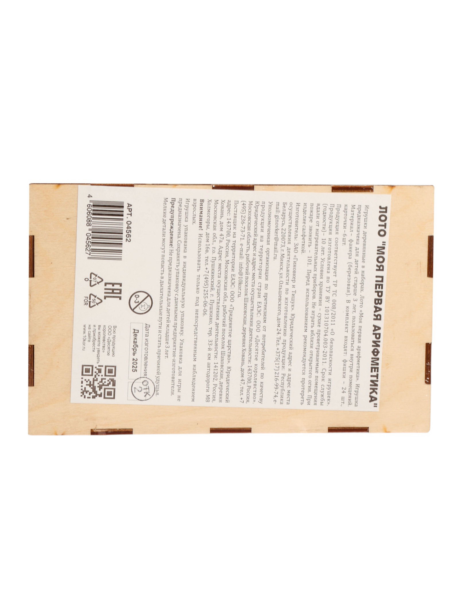 Размер упаковки: 19.5 x 3.7 x 12.2 см. tnved: 9504908000 Температурное ограничение: Нет Возраст: От 3 лет Для кого: Унисекс Тема обучения: Цифры, счёт, математика Материал бочонков: Дерево Первые шаги в счёте через игру, понятную ребёнку Деревянное лото "Учимся считать" помогает мягко познакомить малыша с цифрами и простыми арифметическими действиями. Формат классического лото превращает обучение в живой процесс: ребёнок не заучивает, а постепенно начинает понимать связь чисел и количества.