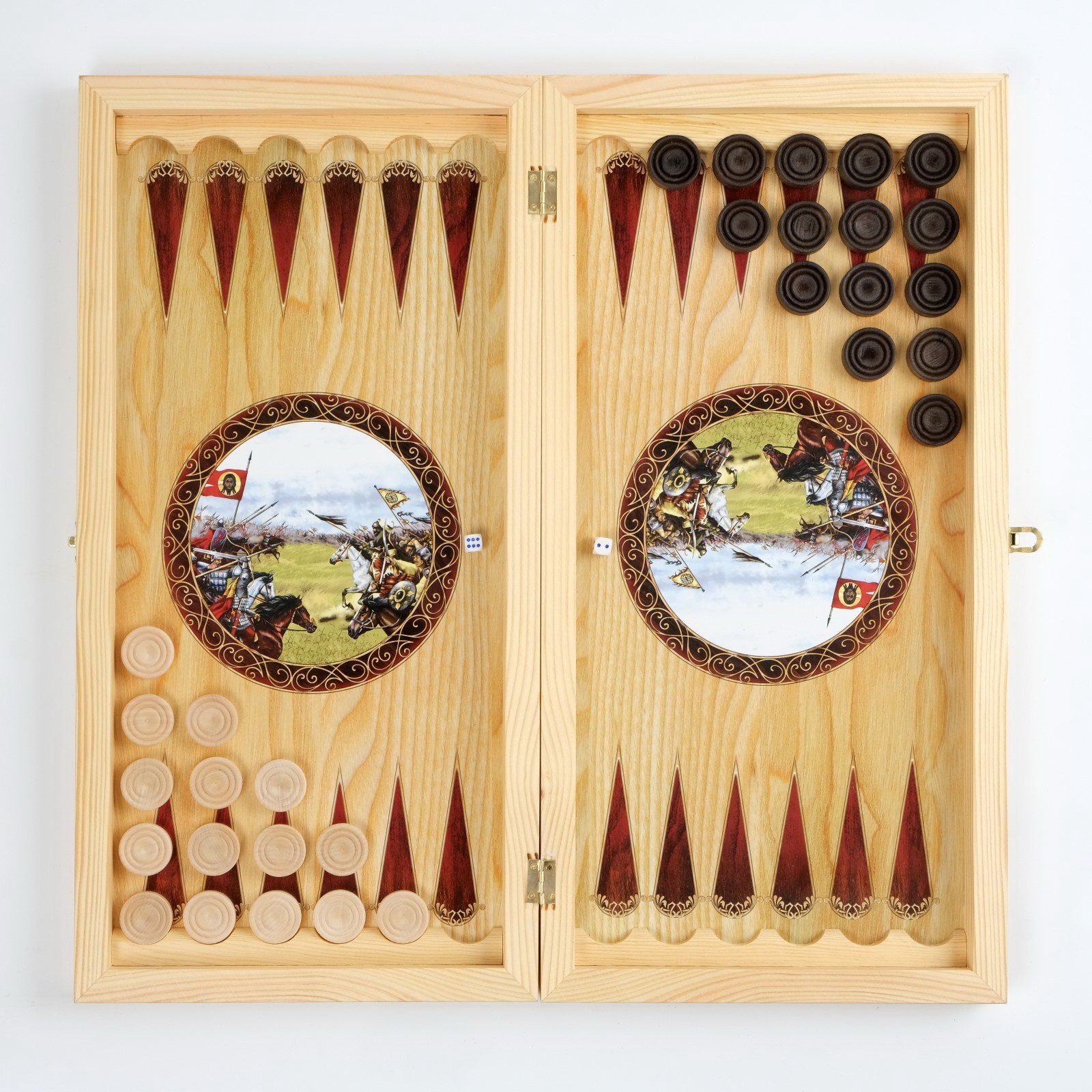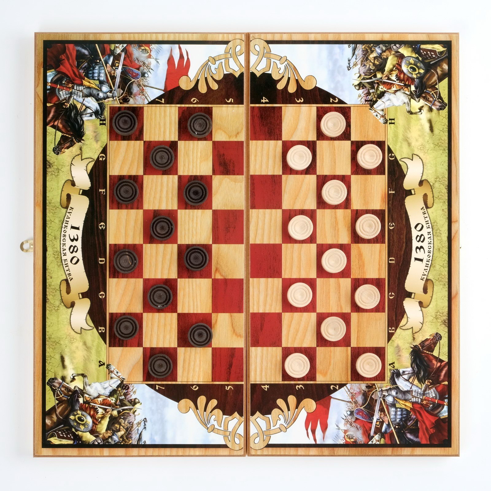 Настольные игры 3в1 "Куликовская битва": шахматы, шашки, нарды деревянные большие, 50 x 50см, TAKE IT EASY, Россия