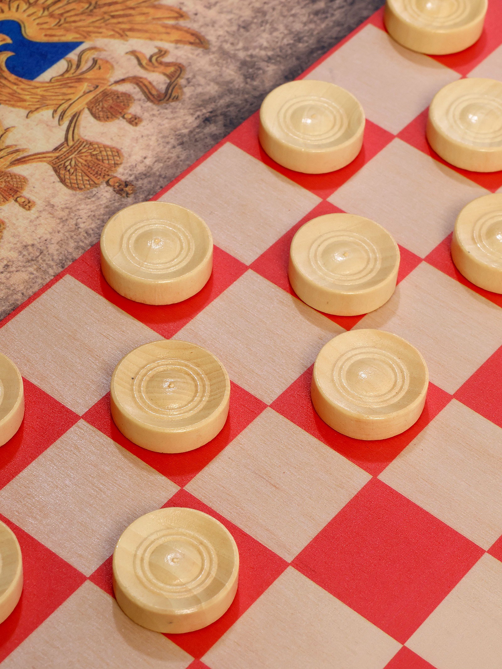 Нарды деревянные большие, настольная игра "Герб России", 60 x 60 см с шашками, Россия
