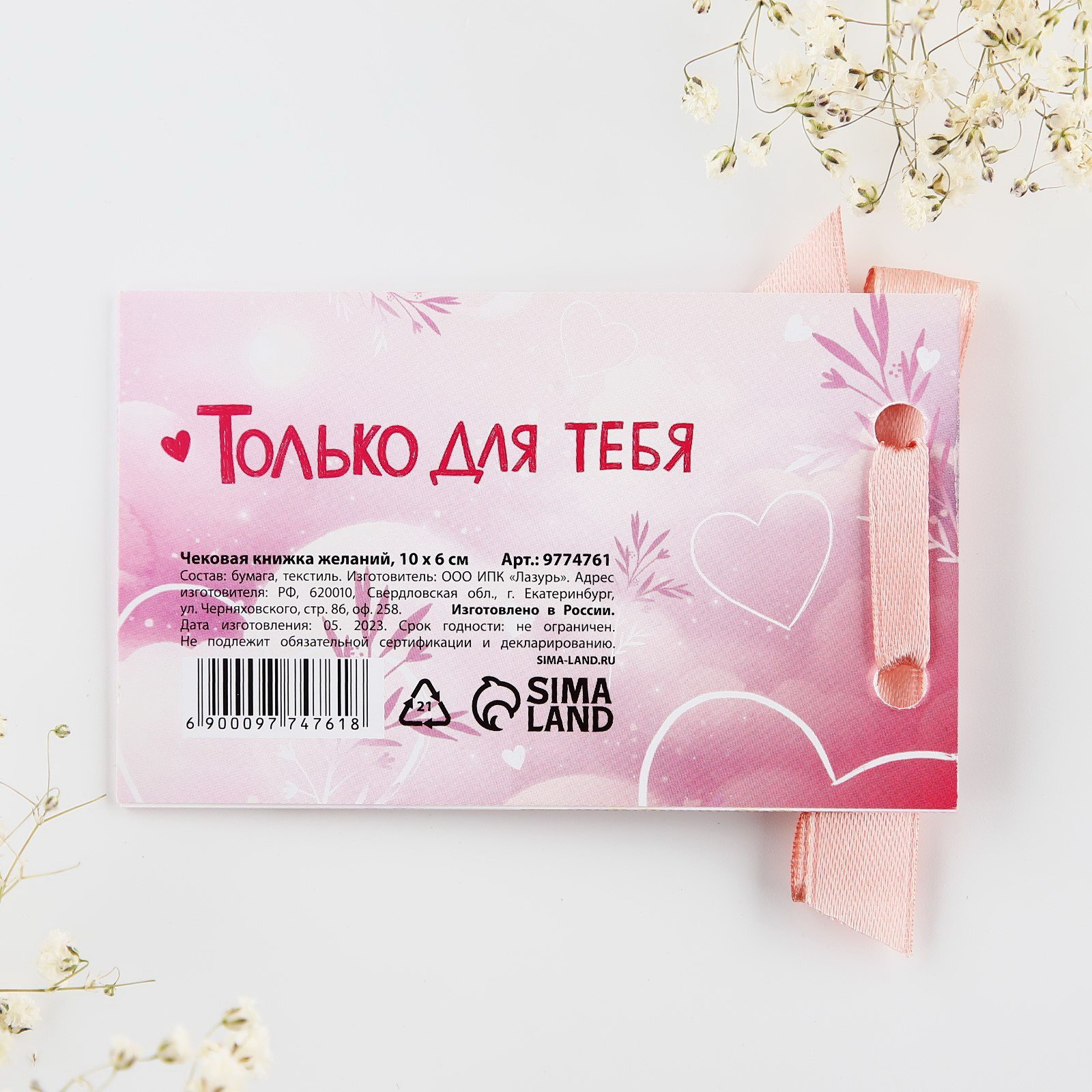 Чековая книжка желаний "Люблю тебя", 10x6 см, Сима-ленд, Россия
