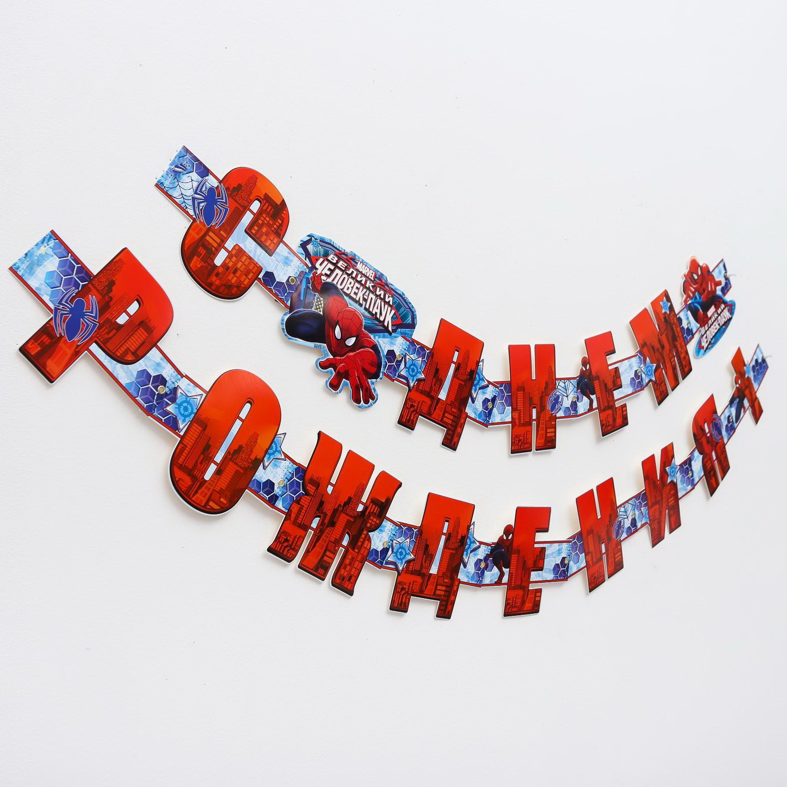 Гирлянда на люверсах "С Днем Рождения!", длина 235 см, Человек Паук, 0.5x22x19 см., MARVEL, Китай