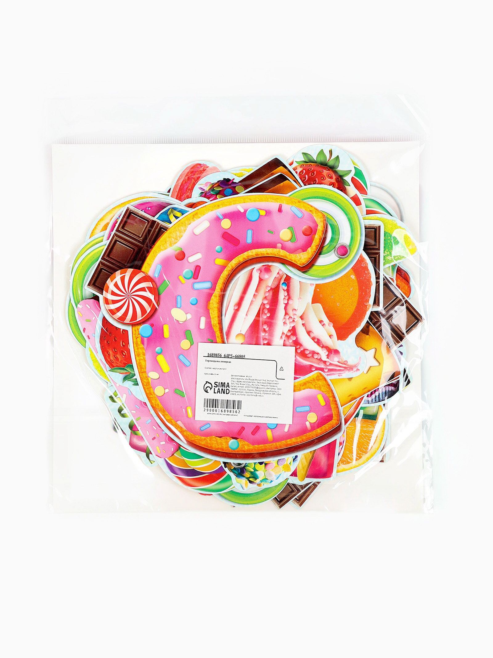 Гирлянда бумажная "С днём рождения!", 0.3x16x16 см., Страна Карнавалия, Китай